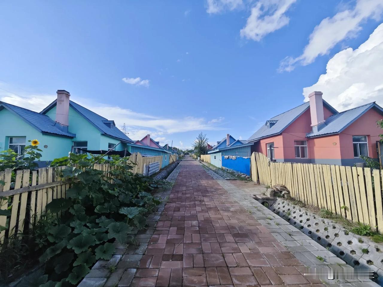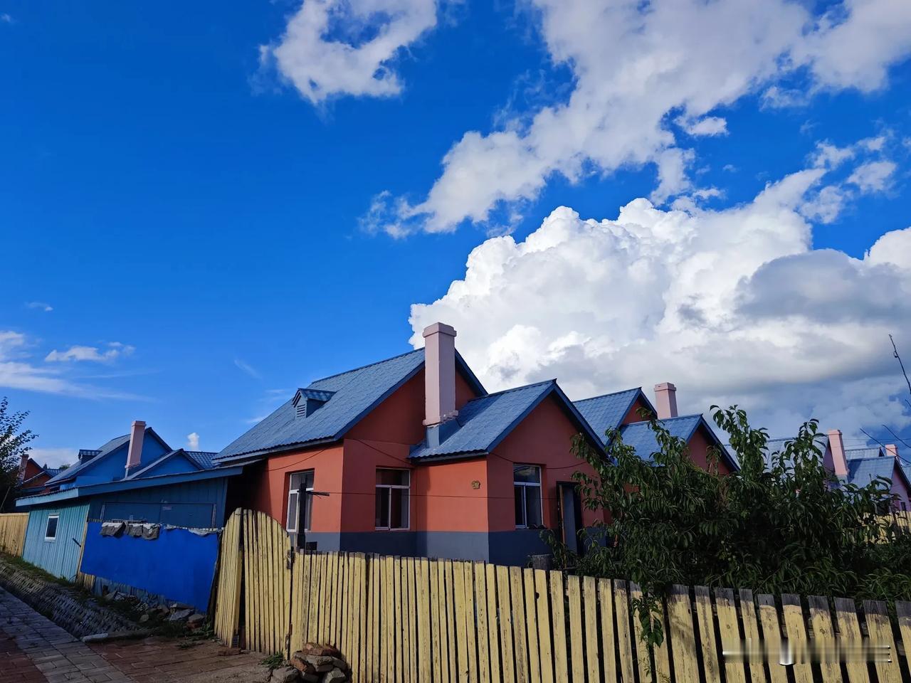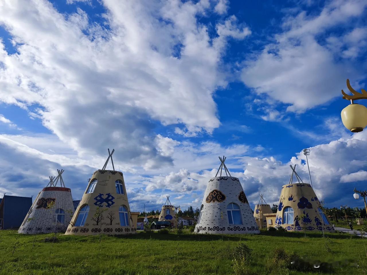 蓝天白云下的鄂伦春族民居,像一个个小城堡。
