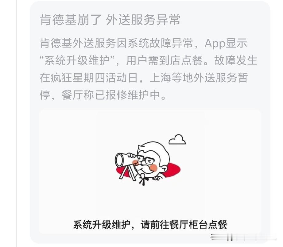 崩了? 是的,肯德基崩了。 我还以为肯德基是预制菜崩了呢?吓了我一跳![比心]