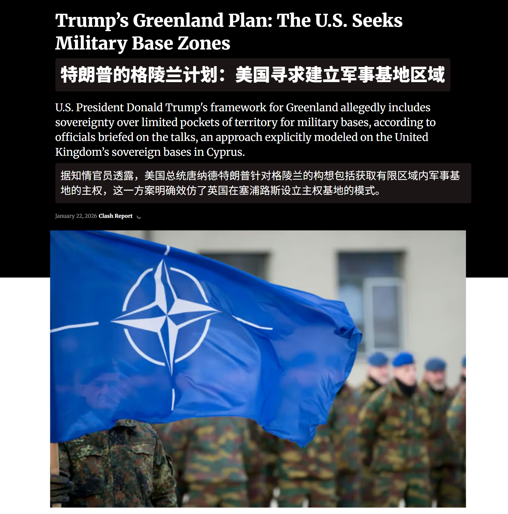🔻纽约时报:美国、丹麦和北约官员正讨论一项扩大美国在格陵兰军事准入权限的框架协议。🔻该提案将赋予美国对格陵兰有限区域的主权,用于建造和运营军事基地。🔻这项与马克·吕特相关的构想,被比作英国在塞浦路斯拥有的主权基地区。🔻这实际上是美国早就得到的东西。热点现场海外新鲜事美国进退之间利字摆中间普京就格陵兰岛表态