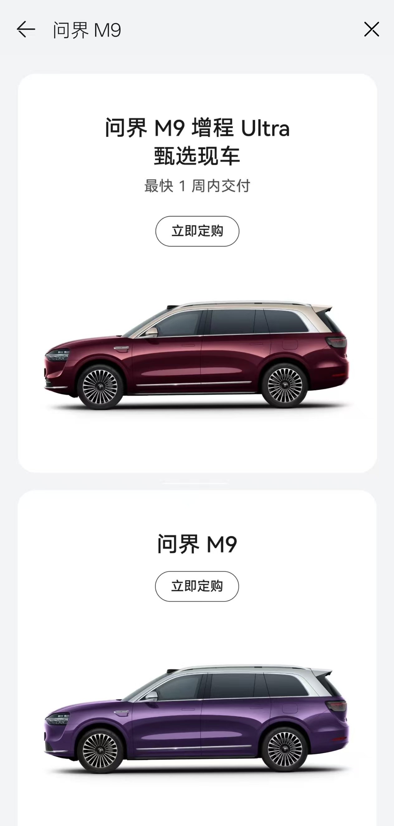 年前想提鸿蒙智行怎么操作?刚看了一下,问界M9有几个固定配置是准现车,最快一周内交付,如果是自选,这个月内下定,在下个月中前也大概率能提车。而智界2025款的S7和R7有现车,去线下谈可能有额外优惠,热销车型比如M7/M8,估计就很难提到了。