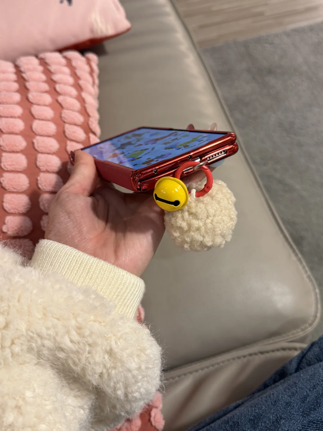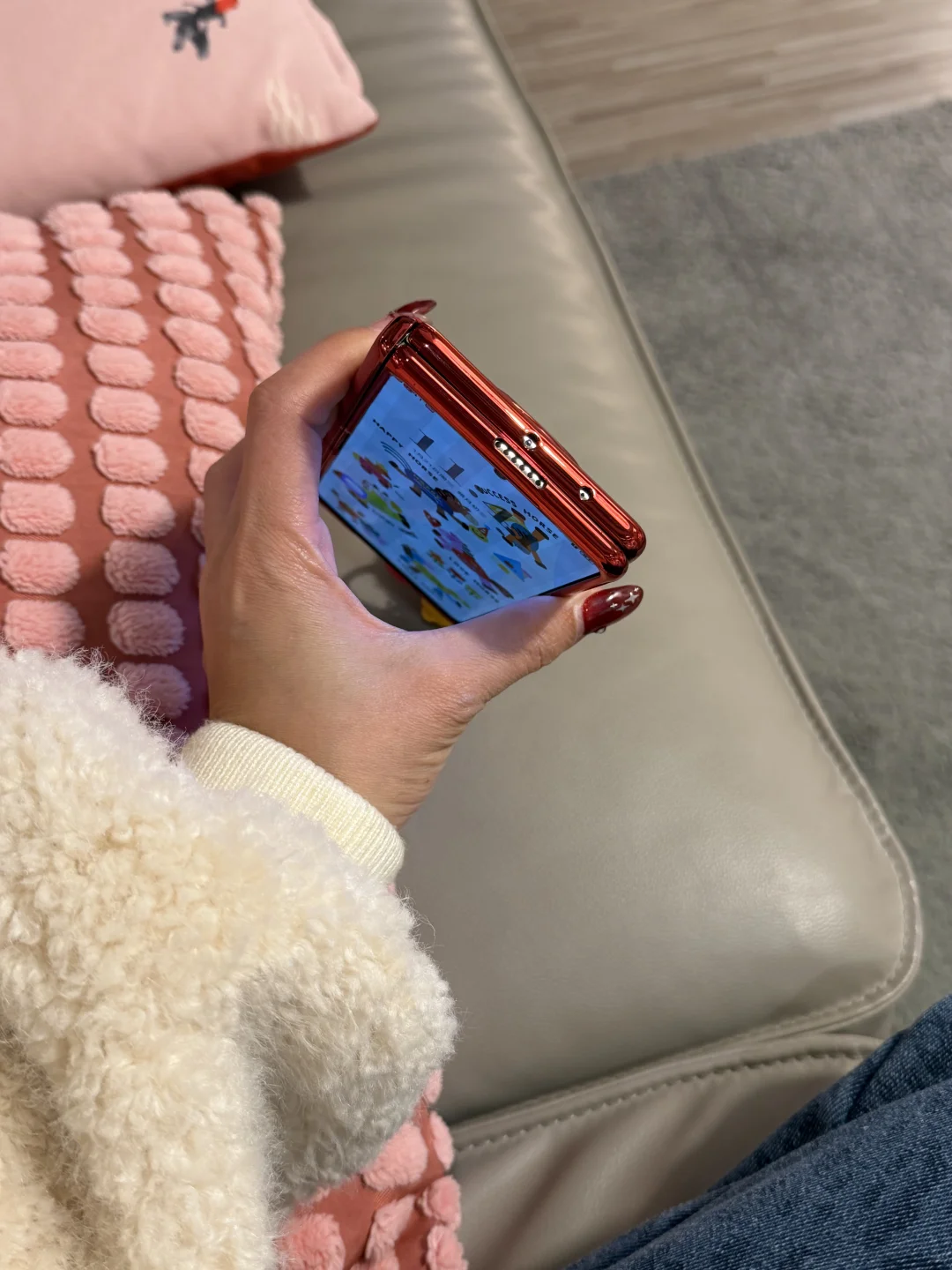 放在朋友家的沙发上🤣🤣被夸了❗️好喜庆啊