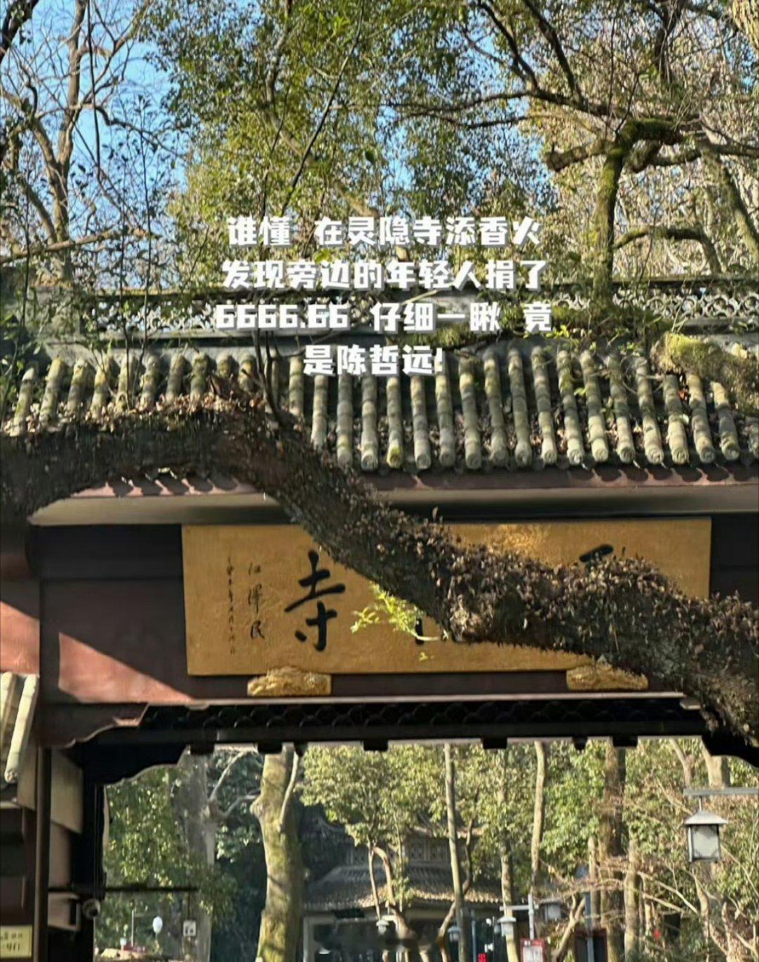 哈哈哈哈哈陈哲远去灵隐寺不仅被偶遇了,还被人知道了他捐了6666.66的香火💰,能感觉到未来一年陈哲远追求的是六六大顺了
