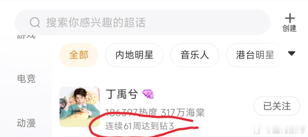 丁禹兮超话获得了年度闪耀钻超,而且超话也已经连续61周(一年才52周)达到了钻三,而且丁禹兮本人微博主页日常300w+断层的访问量,属于是粉丝和嘿粉都很关心的🔥到离谱