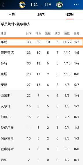 凯尔特人二当家杰伦-布朗真是一名全能型的巨星!在今天凯尔特人主场以119:104轻取步行者的比赛中,布朗打出了非常全面的表现,整场比赛下来,布朗首发出战33分钟,投篮22中11,其中三分球2中1、罚球9中7轰下30分,还有10篮板5助攻3抢断6失误,他的场上正负值为+11。 北京时间1月22日,NBA常规赛继续进行,凯尔特人坐镇主场北岸花园球馆,以119-104轻松击败步行者,顺利拿下一场胜利。 这场比赛没啥太大悬念,凯尔特人从第一节就掌握了主动权,全程牢牢压制着对手,最终赢下15分,也算给近期状态起伏的自己提了提气。 要说这场比赛最亮眼的球员,毫无疑问是凯尔特人二当家杰伦-布朗。 没有了塔图姆的坐镇,布朗彻底扛起了球队的大旗,整场比赛首发出战33分钟,攻防两端都交出了亮眼的答卷。 投篮22中11,命中率刚好达到50%,不算特别爆炸但足够稳定,三分球虽然只投了2个中1个,手感不算顶级,但他把更多精力放在了内线突破和串联球队上,罚球9中7,稳稳收下关键分数,最终轰下30分10篮板5助攻3抢断的全面数据,场上正负值更是达到+11,意味着他在场的时候,球队净胜对手11分,这样的表现,说是全能型巨星一点不为过。 比赛进程其实很清晰,首节一开始,两队还短暂拉锯了一阵,西亚卡姆三分命中扳平比分,布朗立马突破打成2+1回应,之后步行者的进攻突然陷入停滞,凯尔特人抓住机会打出12-2的攻势,一下子就拉开了分差,首节结束就以30-20领先10分。 到了第二节,布朗延续了火热状态,多次突破造杀伤,还频频给队友传好球,凯尔特人趁机再打一波15-0的攻击波,分差直接拉开到20分以上,半场结束以66-46领先,胜负的悬念其实已经小了一半。 下半场步行者虽然靠着西亚卡姆的个人发挥奋力追分,第三节甚至打出16-4的攻势,把分差缩小到个位数,但布朗总能站出来稳住局势,要么突破得分,要么抢断后发动反击,要么给手感火热的豪泽、奎塔传助攻,不让对手有反超的机会。 末节布朗更是命中关键三分,和队友联手再次拉开分差,最终锁定胜局。 当然,这场比赛布朗也有小瑕疵,全场出现了5-6次失误,有几次还是比较低级的传球失误。 这么说吧,这6次失误确实不算少,大概率是因为近期球队状态起伏,加上塔图姆伤停后,他持球时间大幅增加,对手又针对性地对他进行逼抢,才导致失误偏多。但要是结合他全场的贡献来看,这些失误真的可以忽略不计。 要知道,如今的凯尔特人排在东部第二,但近期状态并不稳定,近5场比赛只赢了2场,稍有不慎就可能被身后的球队反超。 而步行者虽然是东部倒数第一,10胜34负的战绩惨淡,但西亚卡姆这场打出了32+10的顶级表现,要是没有布朗的全能发挥,凯尔特人未必能赢得这么轻松。 而且布朗这场不仅得分稳定,还抢下10个篮板,作为一名锋线球员,这样的篮板表现已经超出预期,5次助攻也串联起了全队,3次抢断更是多次打断步行者的进攻节奏,为球队的胜利立下了汗马功劳。 其实能看出来,塔图姆伤停后,布朗的角色发生了很大变化,他不再只是单纯的得分手,而是逐渐承担起了更多的组织和防守责任,这场比赛就是最好的证明。 以他现在的状态,完全有能力撑起球队的进攻,只要后续能减少一些不必要的失误,他的表现只会更加稳定。 这场胜利也能给凯尔特人提提士气,接下来他们将迎来背靠背两连客,挑战篮网和公牛,能不能克服舟车劳顿的影响,继续拿下胜利,还要看布朗的延续性发挥。 毕竟对于现在的凯尔特人来说,布朗的状态,直接决定着球队的上限。 以上都是个人观点,对此您有什么不同的看法,可以在评论区留言讨论!!!