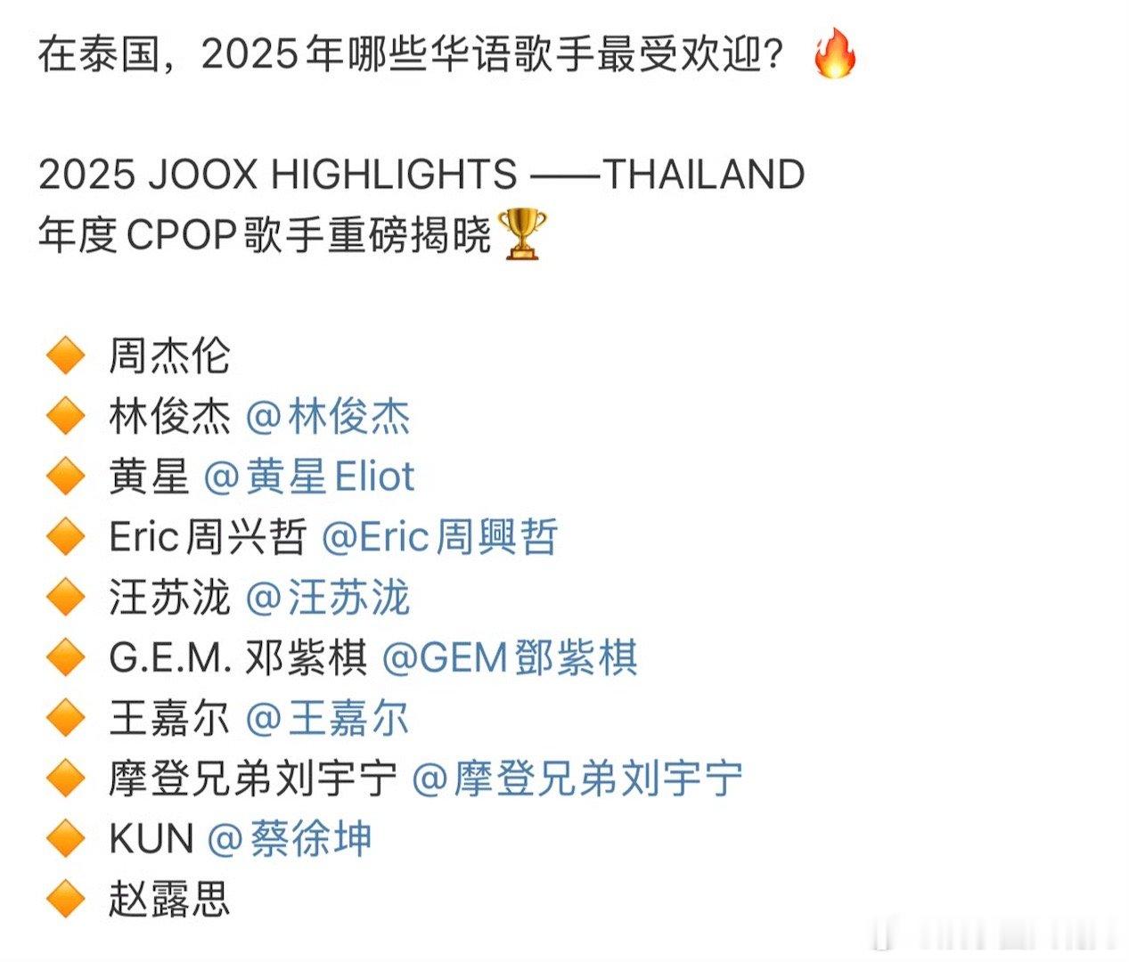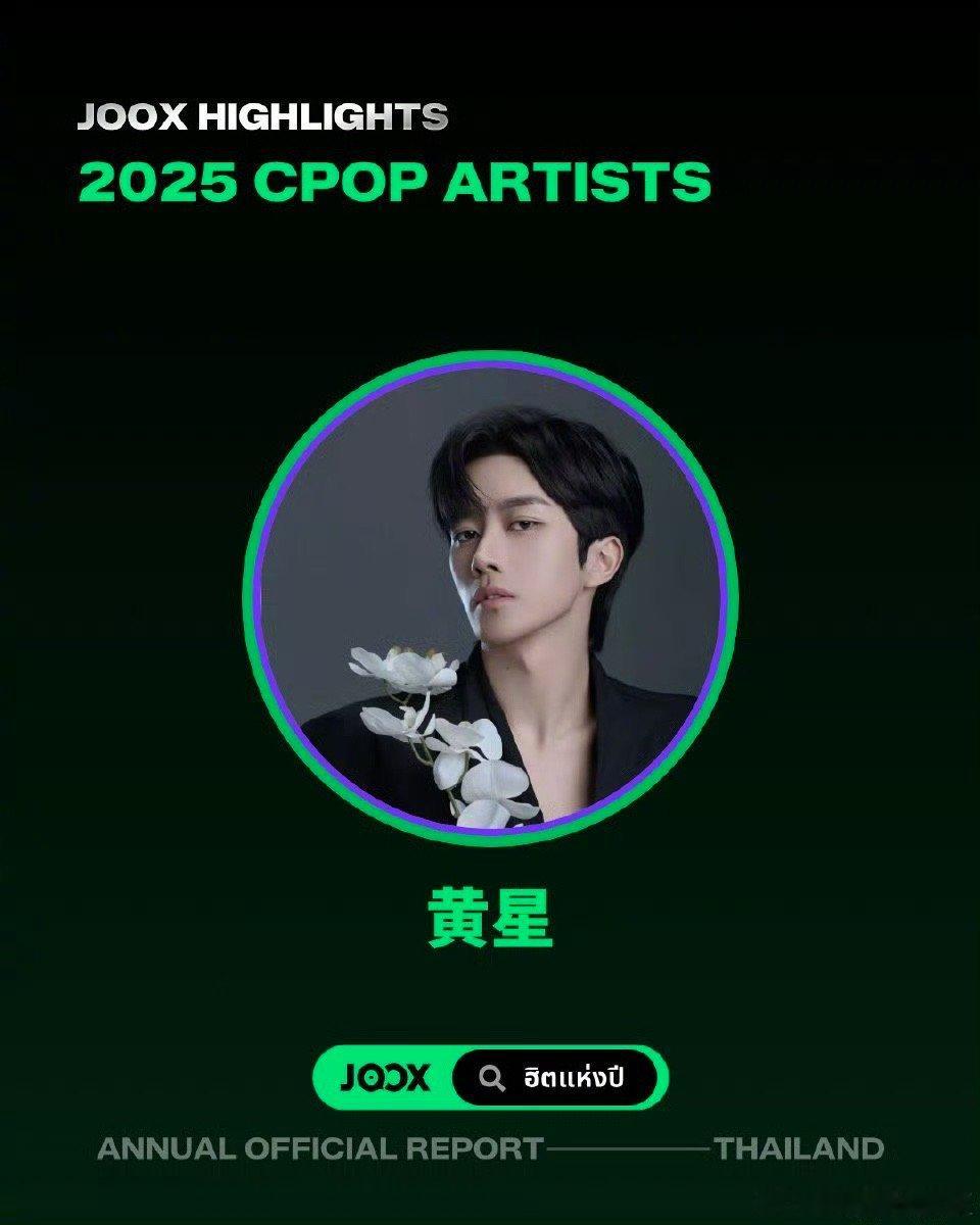 黄星最受欢迎华语歌手 一份来自泰国的年度大奖,证明了黄星音乐的国际级吸引力。他用独特的声线完成了一次迷人的文化输出,让华语流行乐的版图再次拓展。