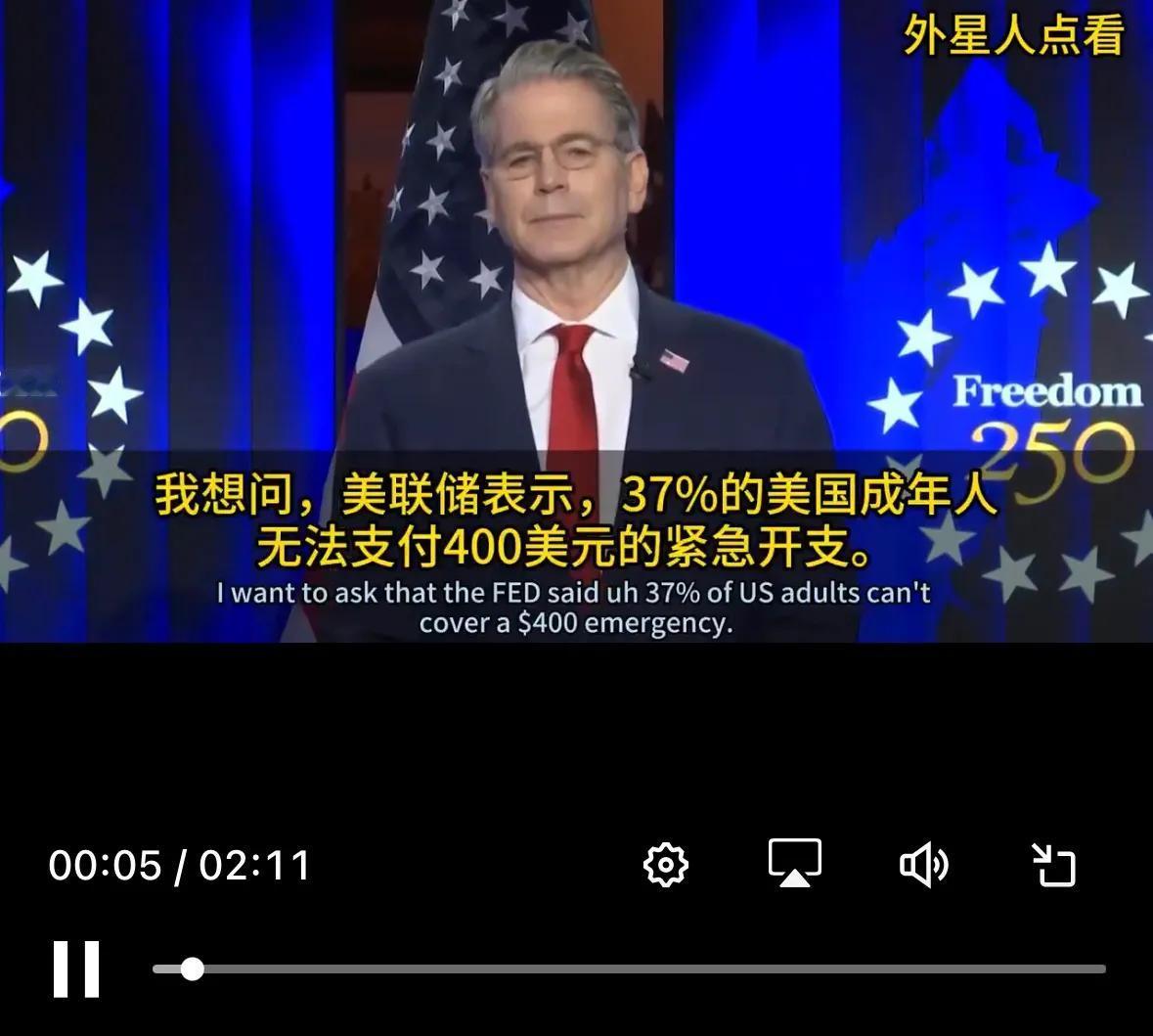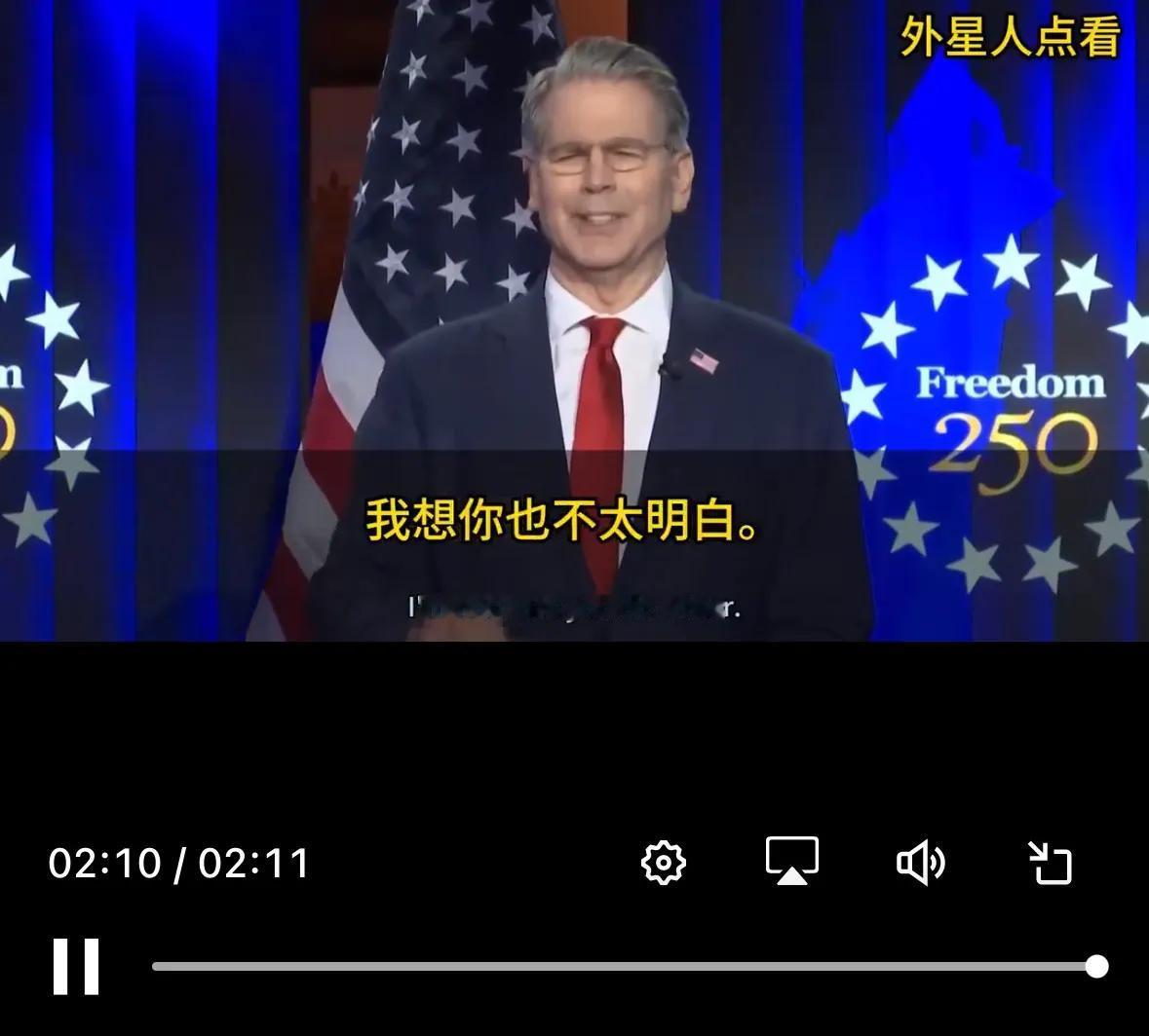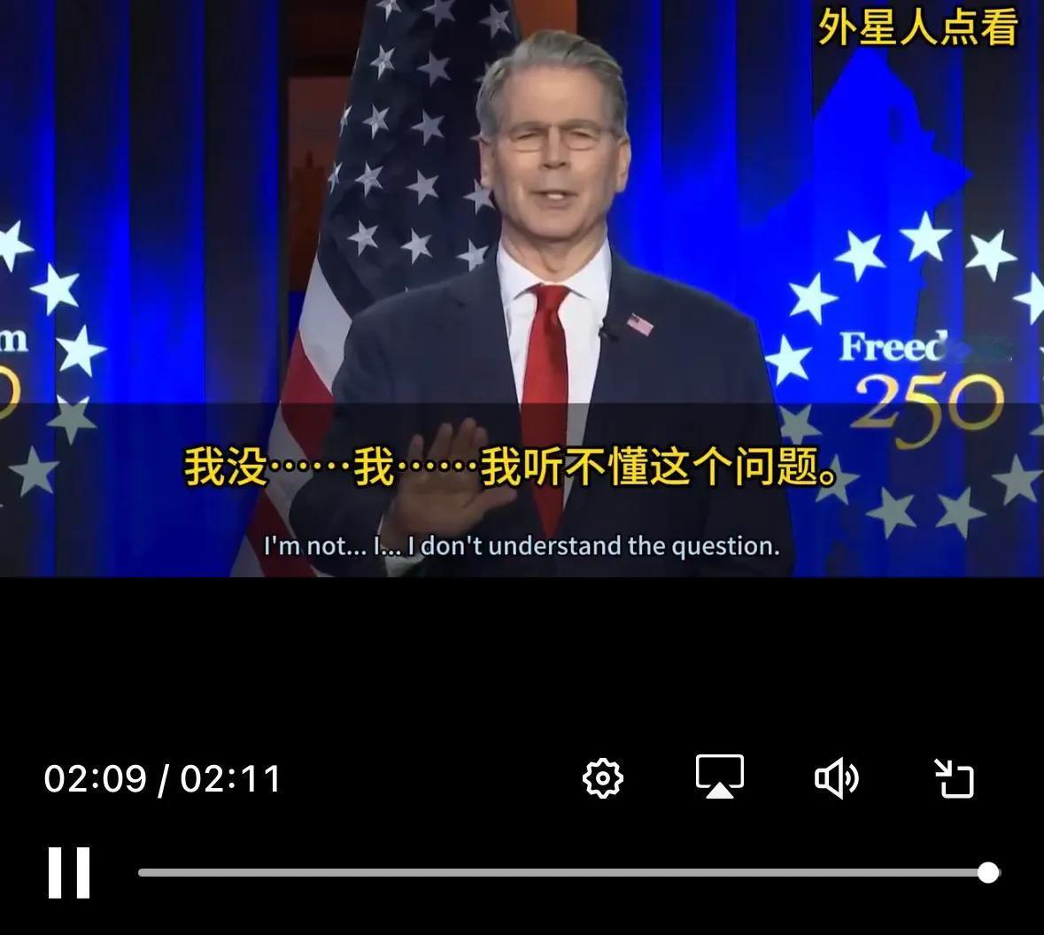央视女记者在达沃斯把美国财长贝森特问懵圈了。 这位女记者用清晰流畅(又叫结结巴巴)的英文向贝森特发问说,37%的美国成年人无法支付400美元的紧急开支… 贝森特回复了一大堆数字,包括收入底层的净资产增速高于顶层,以及可观的退税等。 女记者继续追问财长是否认为美国存在“斩杀线”。 贝森特回应说他“听不懂这个问题”,并且说他想这个女记者“也不太明白”(这个问题)。 央视记者虽然英文不好,但赢了; 贝森特英文好,但输了。