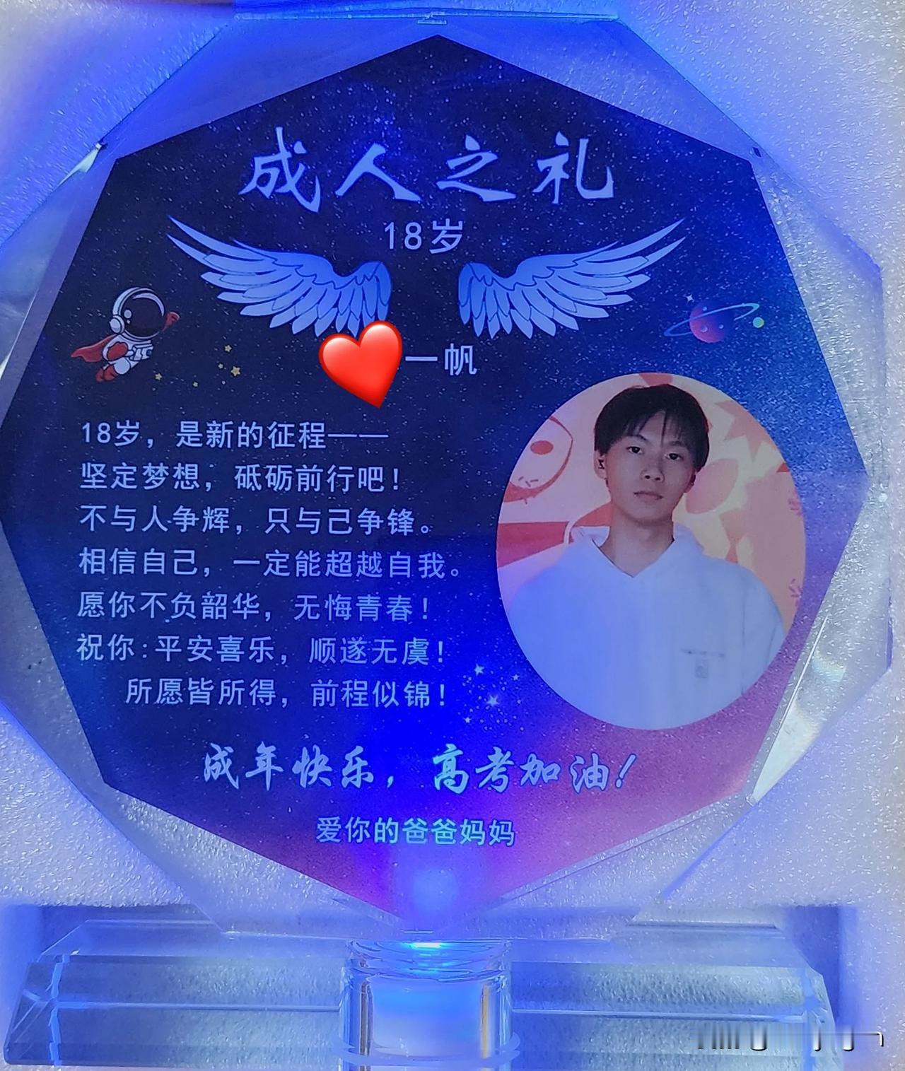 我的男孩👦🏻18岁了喔,十八载春华秋实,十八年含辛茹苦。草长莺飞,变化的是你的成长与进步,不变的是我们浓的化不开的爱。祝你十八岁成人礼快乐!爱你[飞吻]的爸爸妈妈👨🏻👩🏻十八岁致青春