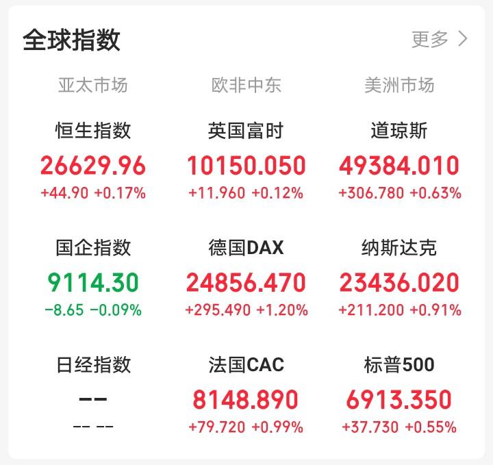 昨天晚上还想着大A冲高回落,今天大A会反人性下跌! 一觉醒来,眼前一亮。富时中国三倍做多ETF上涨,纳斯达克中国金龙指数收涨,富时A50期指连续也收涨,氛围融洽。大A今天再收一根小阳线,看来有希望! 隔夜,老美三大指数全收涨,亚太市场,欧非中东、美洲市场一片红,氛围良好。 隔夜,道指收涨0.63%,纳指收涨0.91%,标普500收涨0.55%,富时中国三倍做多ETF收涨0.79%,富时中国三倍做空ETF收跌0.92%,富时A50期指连续指数小涨0.33%,纳斯达克中国金龙指数收涨1.58%,今天这形式一片大好! 隔夜消息面: 消息一:中国人民银行行长潘功胜接受采访时表示,2026年,降息降准还有一定空间。 消息二:工、农、中、建、交、邮储六大行公告,落实个人消费贷款最新财政贴息政策。 消息三:特朗普,如果欧洲抛售美国债券等资产,将面临大规模报复。 消息面主要是利好消费;第一条属于中性消息;第三条消息,我昨天是认为偏利空的,今天看夜间外围走势,问题不大。 指数已经连续震荡六天了。板块轮动支撑指数在4090点到4150点之间震荡。周三和周四走出了碎步小阳,那么今天会不会选择向上突破呢? 表面上看,4122点距离4140点就18个点,突破4140难度不大。但考虑到今天是周五,资金会顾忌周末消息面,且周三、周四连续小幅反弹两天,今天大概率还会是延续震荡走势。继续震荡还是站上4140冲击4200点,要下周才能有答案。慧眼认为关键取决于周末消息面。 如果周末消息面良好,成交量能够再次放大,那么下周有望再冲4200点。反之,那么指数会选择回调。 当下,值得注意的是,板块轮动速度太快,延续性差,操作难度大,因此,不能追涨,以防一日游,第二天吃面。 人最重要的是,要保持积极良好的心态,积极乐观的过好每一天。心有光,脚下有路,你远比自己想象的更坚韧,追光的人,终会光芒万丈。 理财有风险,投资需谨慎。大家一定要保持谨慎,做好风险控制。 点赞,关注是对我最大的支持!