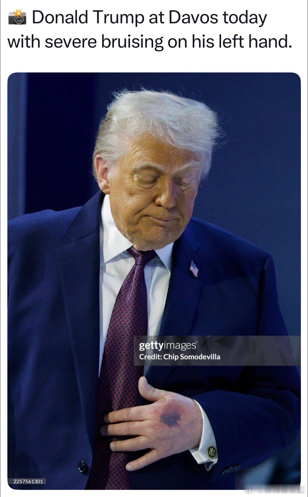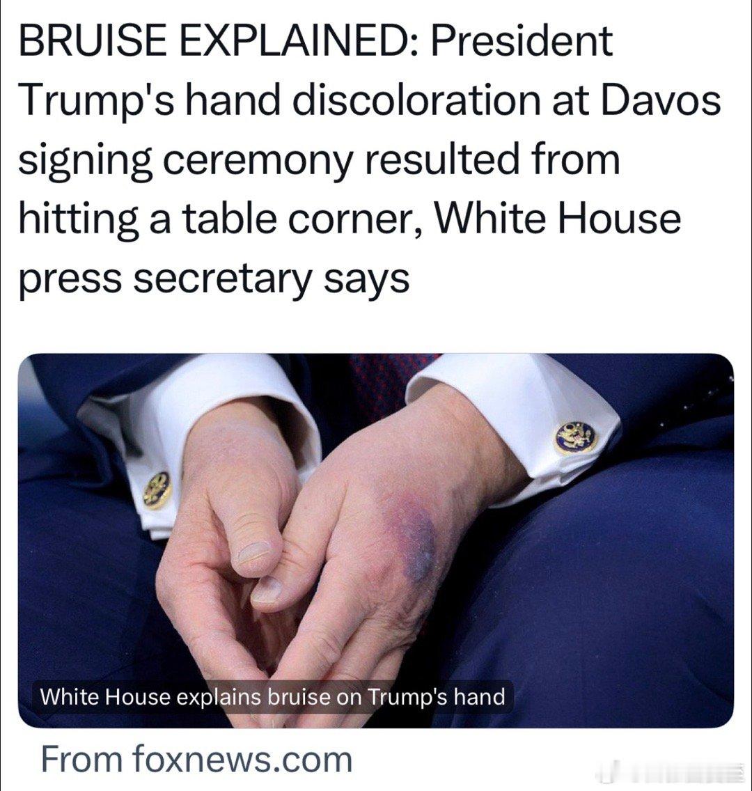 Trump手上的伤,白宫新闻发言人解释:手背撞到桌角