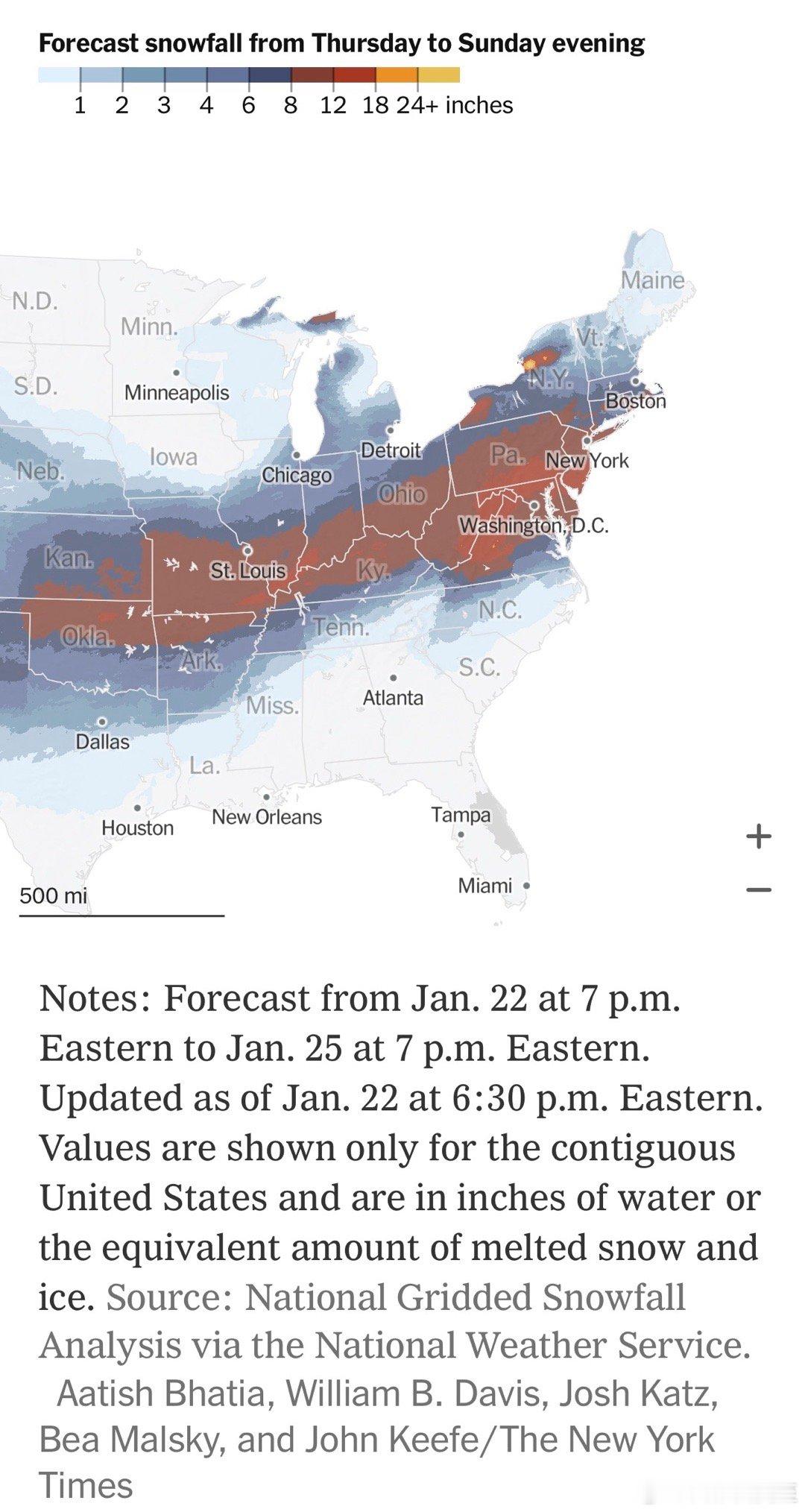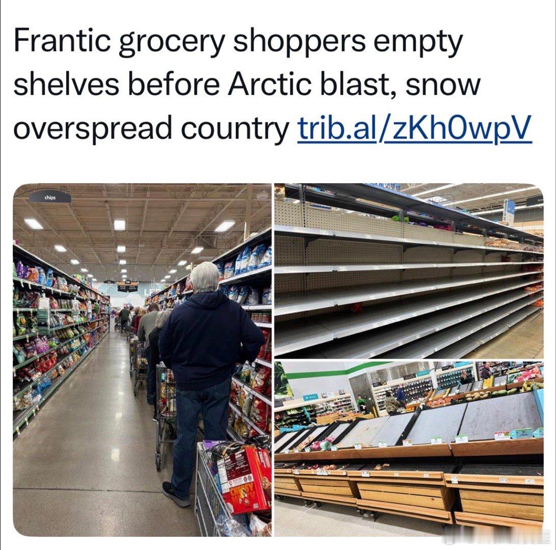 美东周四晚到周日晚,图一红色地区,预报有暴风雪会影响数千万人,多数居民在囤粮