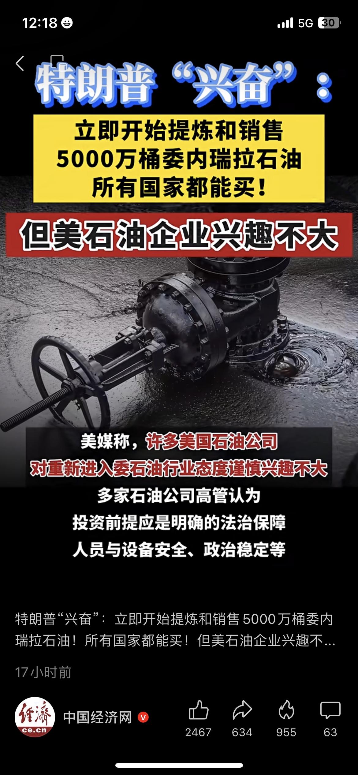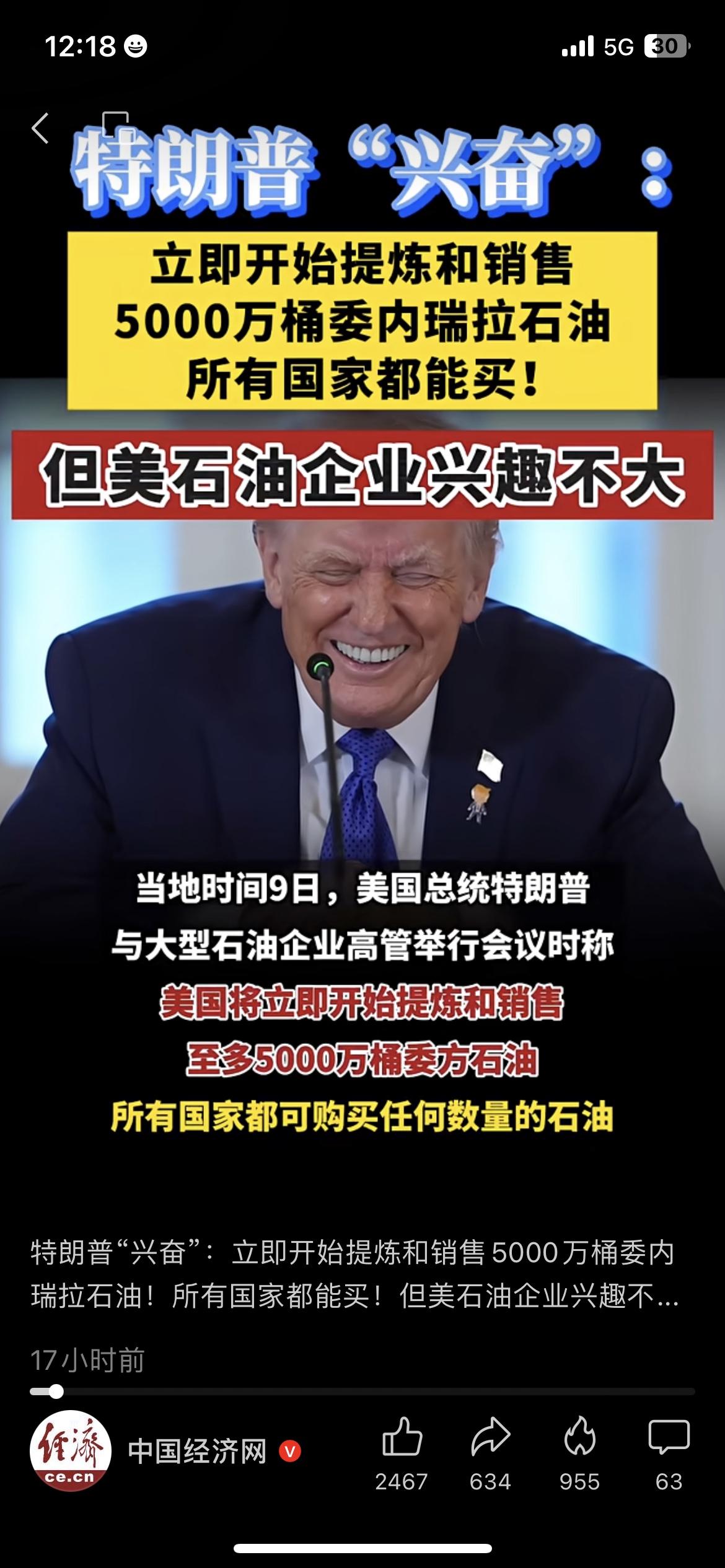 离谱!特朗普卖委石油,美企居然不买账? 特朗普又出大招了:计划抛售5000万桶委内瑞拉石油,结果美国企业居然兴趣不大。这波操作属实把人看懵了。 国际石油博弈,从来都是利益比口号更重要。 用竞技体育的策略来类比,这就像明明手里有牌,却没算清楚对手的底牌——美企不买账,无非是觉得利润不够、风险太高。毕竟现在国际油价波动这么大,谁也不想当冤大头。 你觉得这波石油抛售计划,最后会不了了之吗?