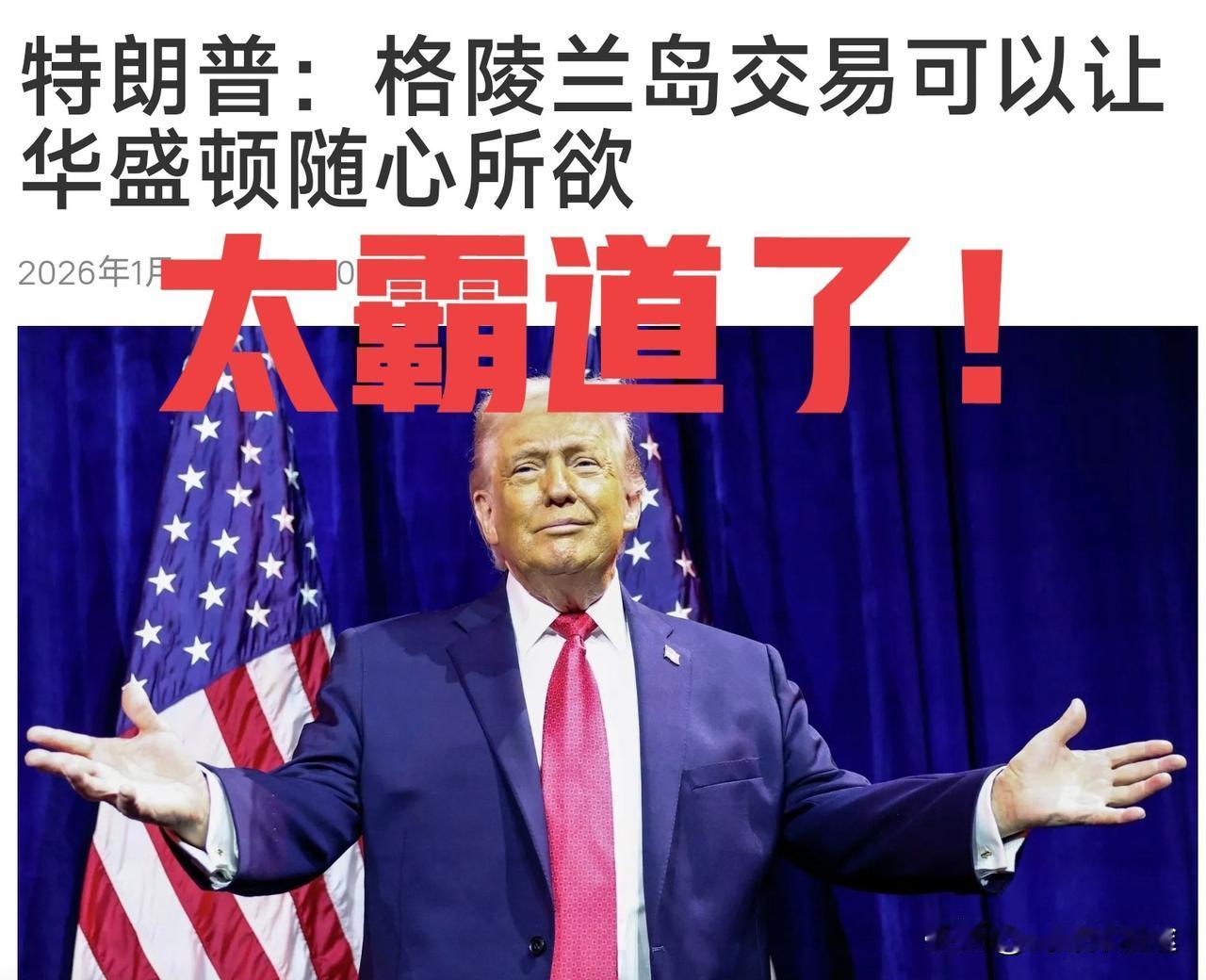 特朗普公然表示:格陵兰岛交易成果,将赋予美国随心所欲 为所欲为的任何事情!只要美国想要的一切 一个都逃不掉! 这是特朗普在达沃斯论坛表示,格陵兰岛美国将长期并永久拥有 ,同时美国将“零成本”获得想要的一切!特朗普在国际场合这样公然表态,说明他眼中根本不把世界放在眼里,这个世界就是美国一家的,特朗普说了算 他就是“king”! 特朗普真的当北约及欧洲所有国家是一群“傻子”的存在,北约秘书长吕特恶舔媚亲特朗普 表示:只要美国有任何安全问题 北约欧洲国家义不容辞的顶上去,就如当年的入侵伊拉克一样,北约士兵愿为美国付出生命!作为一个北约的领导人跪舔特朗普到这种程度了,北约到底谁家的 谁说了算 不言而喻了! 丹麦首相一个女人当家,估计早已被特朗普的言论吓得不轻了,她表示,丹麦已经开始与美国政府合作,并正在明确这项工作将如何进行。她表示,丹麦一直希望在外交规则范围内与美国达成协议。特朗普要的就是格陵兰岛【长期交易,有效期是永久的】也就是美国想在岛上干嘛就是干嘛,虽然没在主权上签字,其实被相认为美国拥有岛上的所有权力。 然而欧洲这些国家呢?除了卡尼与法国在达沃斯演讲上表达出欧洲要自强 要减少对美国依赖之外,德国总理表示:自己对特朗普在格陵兰岛问题上改变立场表示欢迎,因为这是“朝着正确方向迈出的一步”。占用别人家的领土 不称是“正确方向”!这难道不就是“惧怕”的心理吗?德国总理谈美国占陵兰兰岛之时 还不忘附上中国:中国挑战了美国的地位 所以才有了美国重新改变了外交模式!(纯属胡扯) 想想欧洲国家为了格陵兰岛派出 37 人的军人前往格陵兰岛演习,这一种就是一种笑话存在,48 小时不到 德国撤军 荷兰撤军 这什么意思呢?在美国关税重压之下,第一个撤军就是德国,吓尿了都! 欧洲及北约这种“软弱”存在,才让美国有了“捏死欧洲”的想法,重塑了美国的“伟大”,将欧洲踏在美国脚下。特朗普才敢说出:美国可以为所欲为 欧洲一切! 从这一次美国拿格陵兰岛做为一个“试探”而成功,将助长美国的更大的野心,下一个将会是欧洲哪 个 国家呢! 特朗普在回答格陵兰岛交易时 对记者说:美国可以做一切想做的事情!没有人可以阻挡! 特朗普这种霸气,还真的很佩服他,一个 80 岁的老人还能有这种世界霸气,更是反衬出这个世界除了几个国家可以对抗美国之外,特朗普根本没有放在眼里,想动谁就动谁! 虽然塞尔维亚总统武契奇20日在达沃斯一场活动上表示,自己过去 12 次 达沃斯论坛,但从未看到人们如此担忧。他所担忧就是美国成为了“具有相当侵略性”,都不知道明天会变成什么样!相当悲观心态! 瑞典首相克里斯特松21日表示,美国总统特朗普演讲“处处显示出不公正”,其针对欧洲的言辞“充满威胁与讽刺”。 加拿大总理卡尼演讲表示:对中等强国而言,若我们不在谈判桌上,便会沦为他人盘中餐。当我们以弱势姿态,与霸权国家进行双边谈判,我们拥有的不是主权,只是在接受从属地位的同时,表演主权而已。 世界各国也很清楚表时对美国这种“霸”的担心与恐惧,而美国的“侵略性”手段确实让世界更加的混乱与恐惧。而美国为所欲为 让这个世界陷入了重新思考未来的方向!