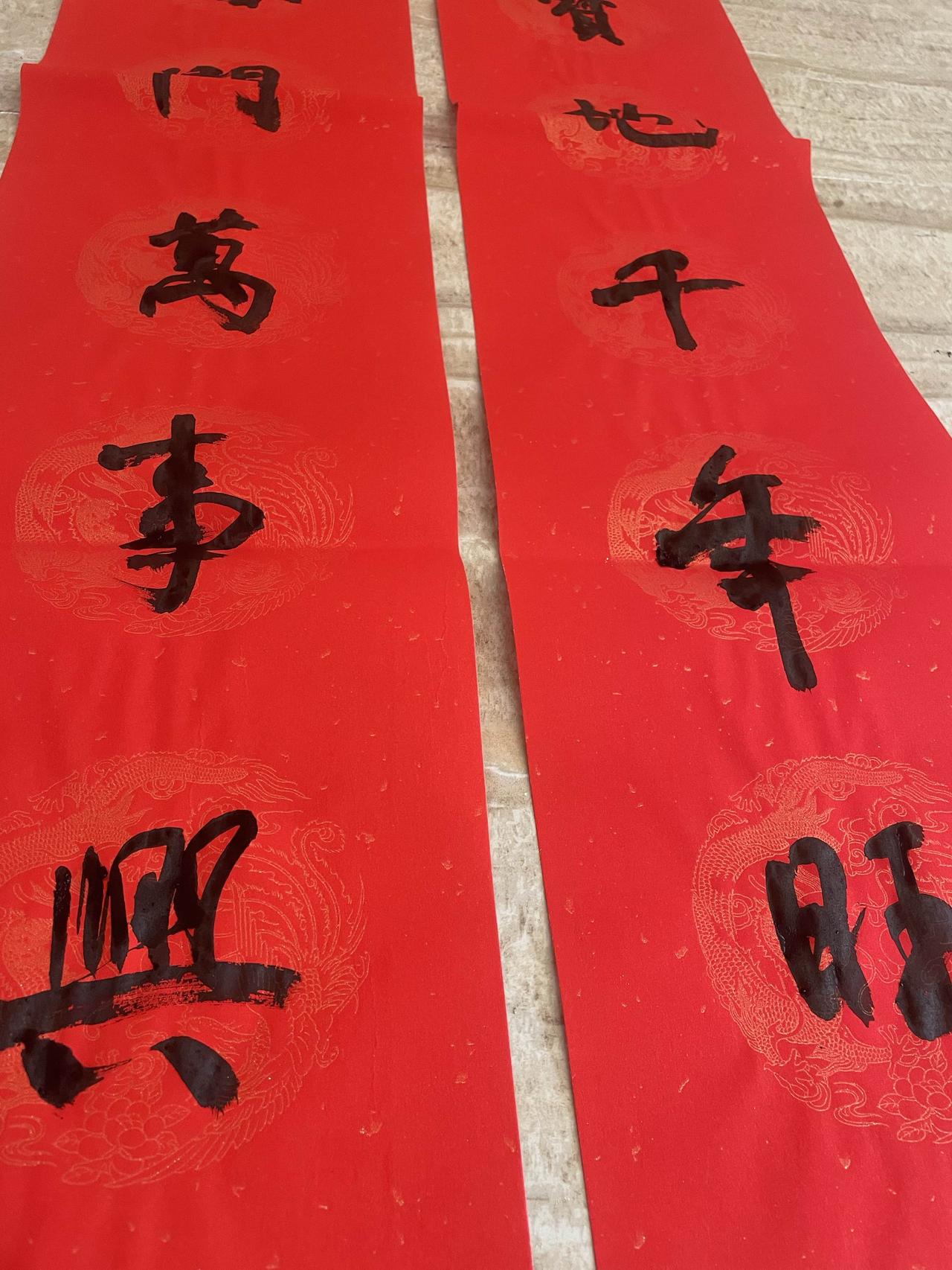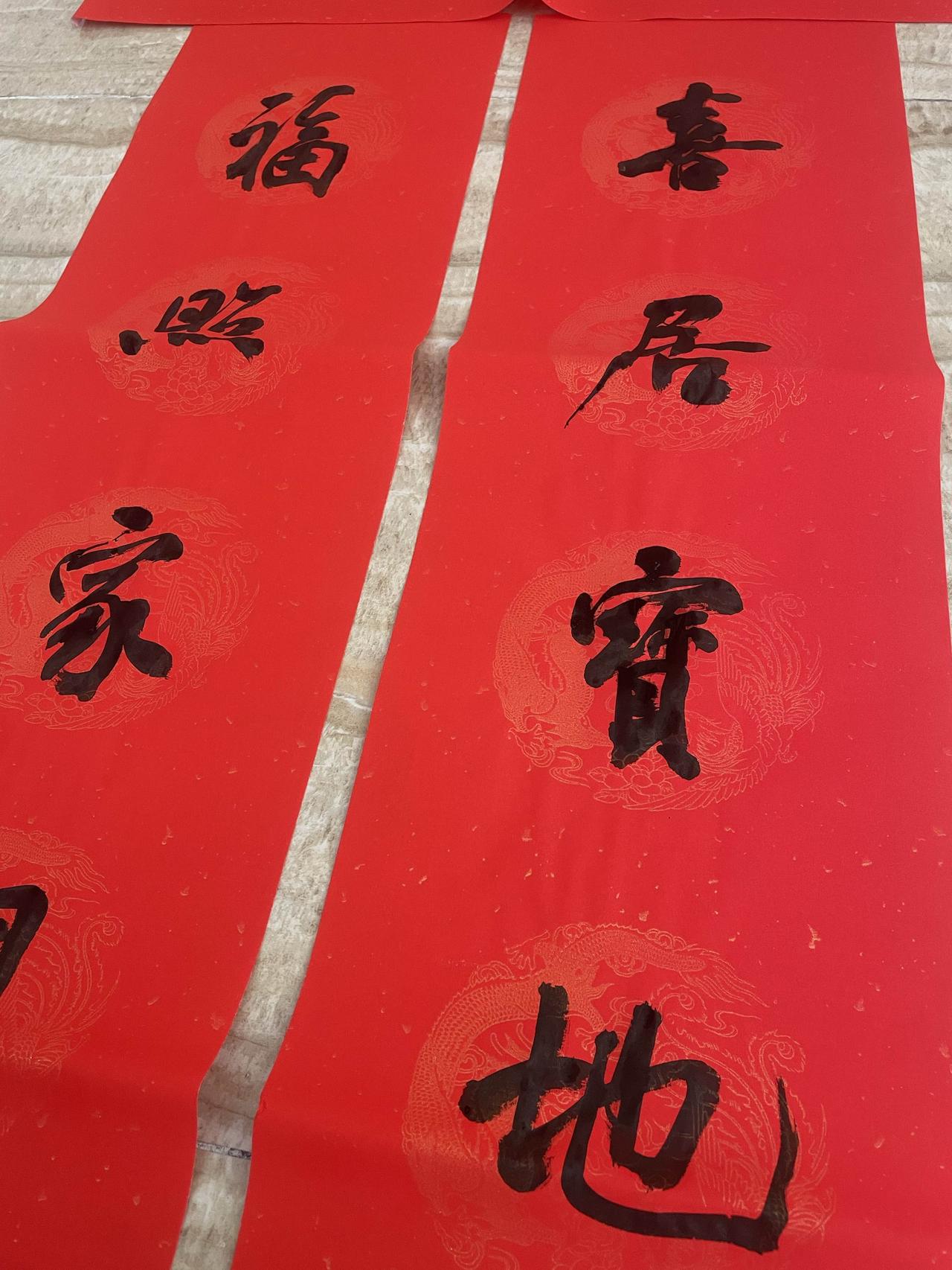 手写春联,湖南省书法家协会会员所写,138cm*46cm,红纸黑字,内容“福照家门万事兴 喜居宝地千年旺”,带横批,字迹工整,寓意美好,适合春节贴门上,家里、店铺都能用。成色还可以,有点使用痕迹,不影响正常书写。包邮,同城可自提,多幅价格可聊,喜欢的宝妈可以私聊~售出不退不换哦~