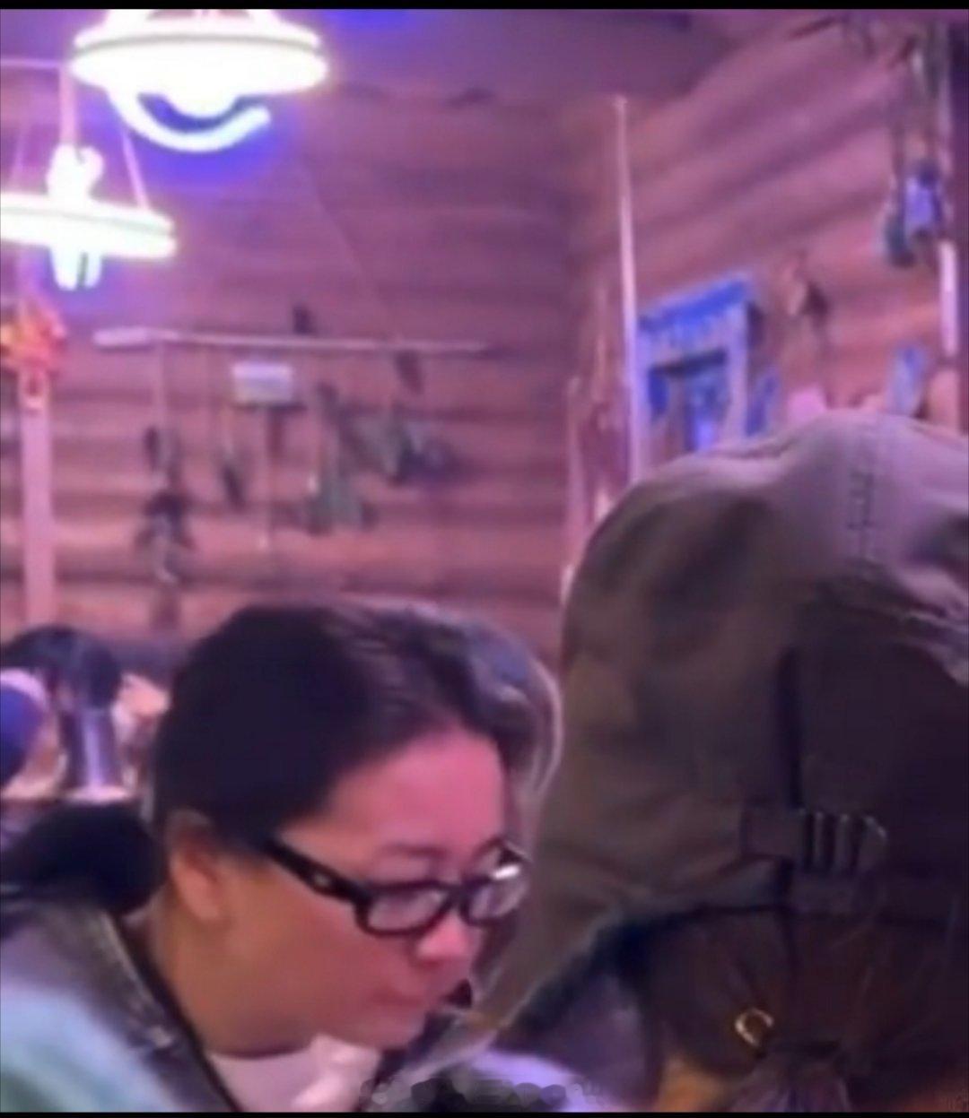 刘亦菲喝醉酒微醺的状态被拍到,脸上已经泛起了红晕,被拍到后眼神微怒