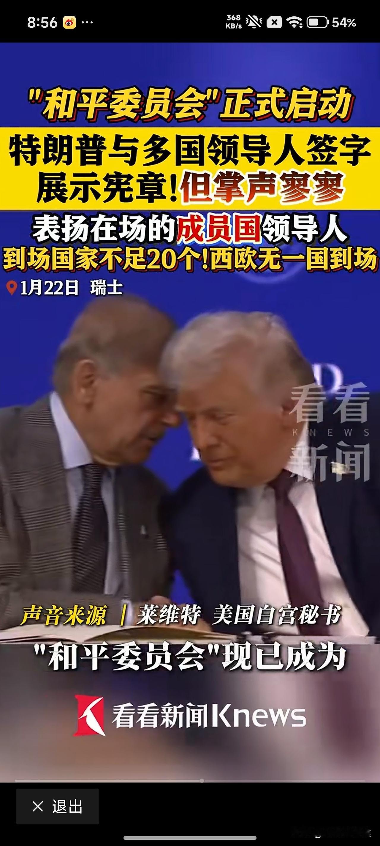 "和平委员会”欧洲不签?G7 不签?要反了吗?特朗普怒了! 特朗普发出 60 国邀请信,目前仅十几个国家签字愿入会,大部份的国家是中东国家 包括约旦、阿联酋、印尼、巴基斯坦、土耳其、沙特阿拉伯、卡塔尔和埃及等国。 另外法国 英国已明确拒绝加入,同时 G7 国家 中的 G6 也没有明确要加入。 欧洲国家很清楚 特别是法国 英国作为欧洲大国的代表 也是“五常”这一,他们身后有联合国职能身份,而这个所谓的“和平委员会”要替代联合国的职能,法英不可能加入的! 首先,从美国入侵委内瑞拉 再到企图将格陵兰岛划为美国所有,美国这种无视国际法的行为,让欧洲国家“见而远之”的担忧,越靠近美国 越被美国拿捏 毫无自主性!离美国完点更安全。 其次:这种的和平委员会 核心力量均是美国政府要员,特朗普为终身制主席,缺乏公平公正管理模式,美国一家独大。 美国想干什么 余下的国家就是附庸而已,交了 10 亿美元还当美国的棋子 再者:三年后 特朗普下台,“和平委员会”何去何从 没有任何法律存在地位,10 亿美国打水漂!如果美国民主党当政非法取消这个委员会,结果为零! 所以欧洲国家不能加是看清了这个“和平委员会”真实目面,不过欧洲国家不参加 特朗普手上的“关税 与军事”就成为手段了,虽然美国直接动武可能性低,但就像格陵兰岛一样,下一个国家将会是谁呢?有人说是加拿大 有人说是挪威或冰岛,这也就就是特朗普所说的:格陵兰岛交易成功,让美国可以随心所欲 为所欲为的做美国想做的任何事情! 美国靠不住 不想与其共事 减少依赖美国 远离美国 这也许就是欧洲的共识!