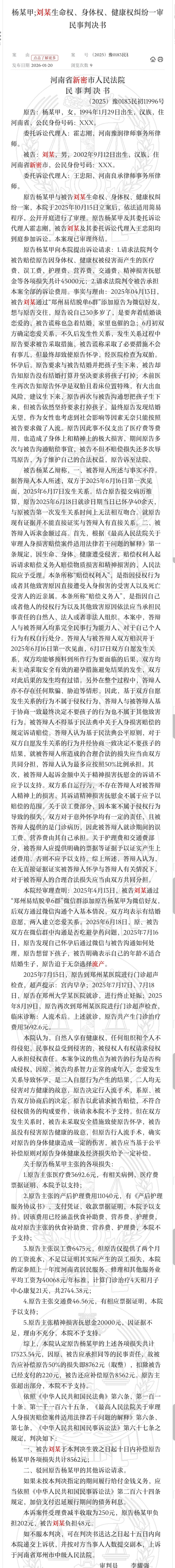 开庭前女:你的男:时间上不是我的开庭后你们协商不要孩子的,一人一半!小伙致女友怀孕称年龄不适合结婚
