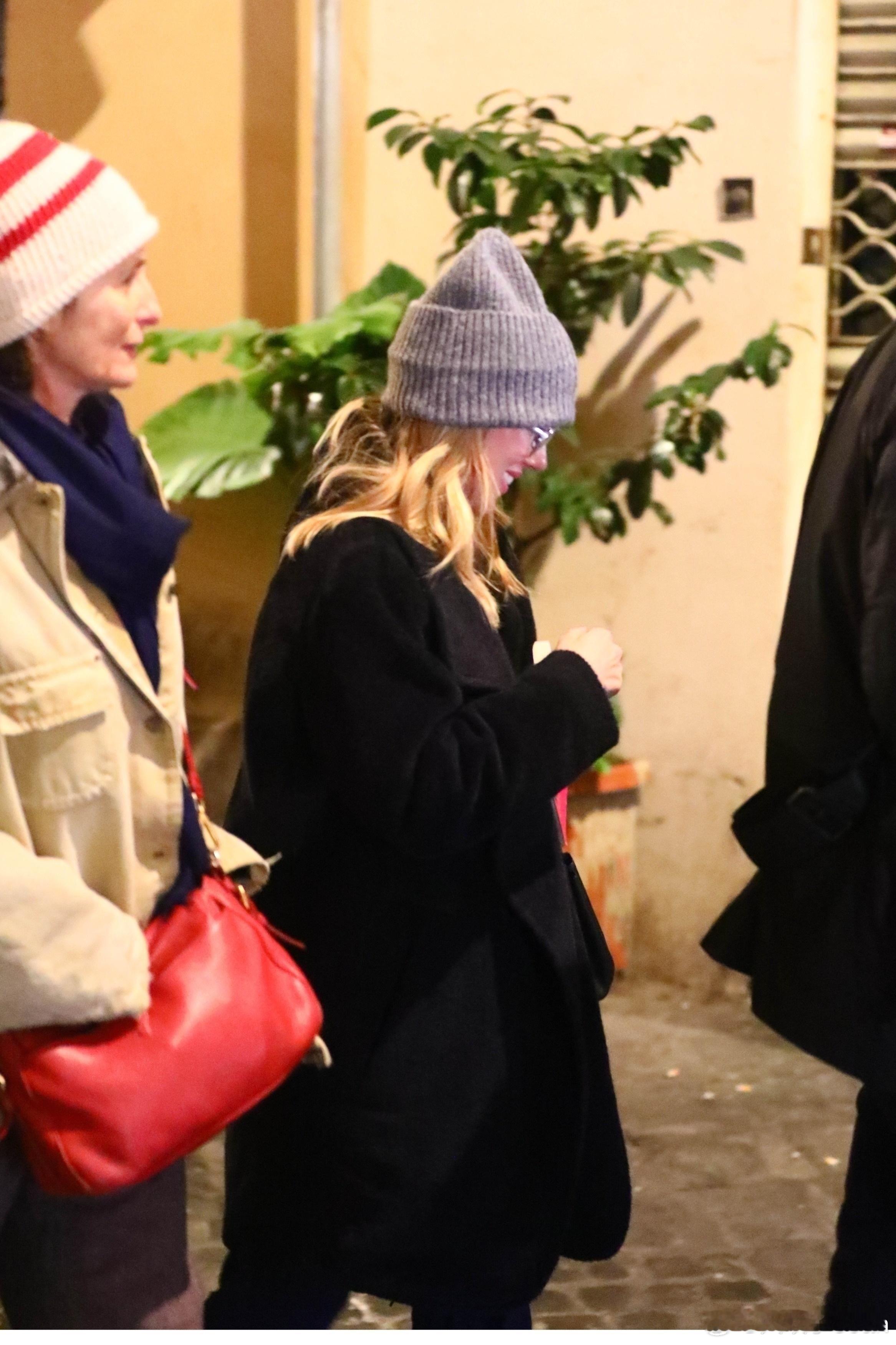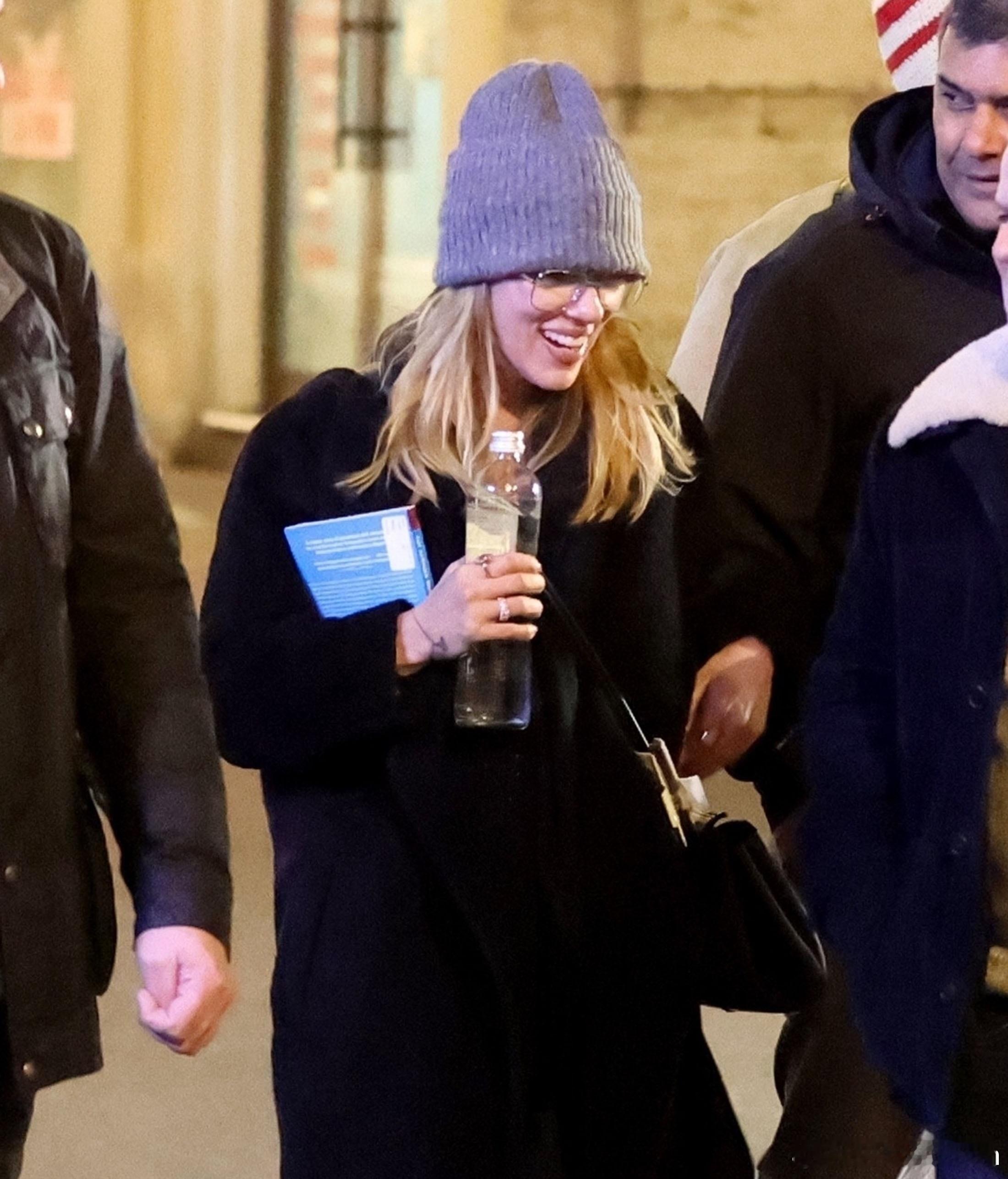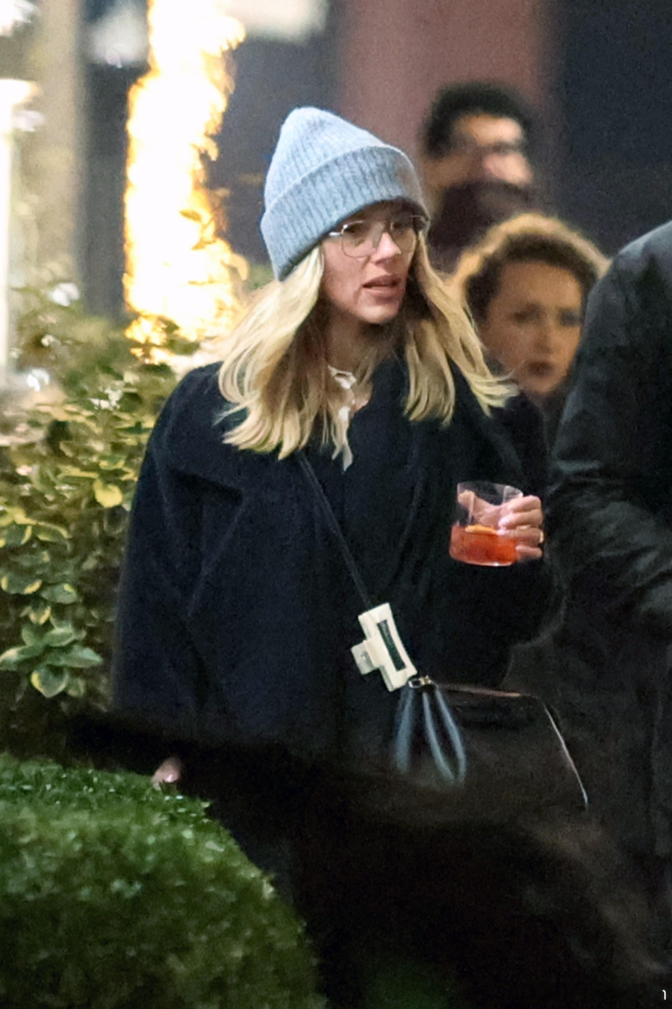 Scarlett Johansson斯嘉丽约翰逊在罗马外出,拿着杯鸡尾酒离开酒店,和导演Wes Anderson还有Prada广告部的制作人一起前往就餐,看来是要拍新广告了