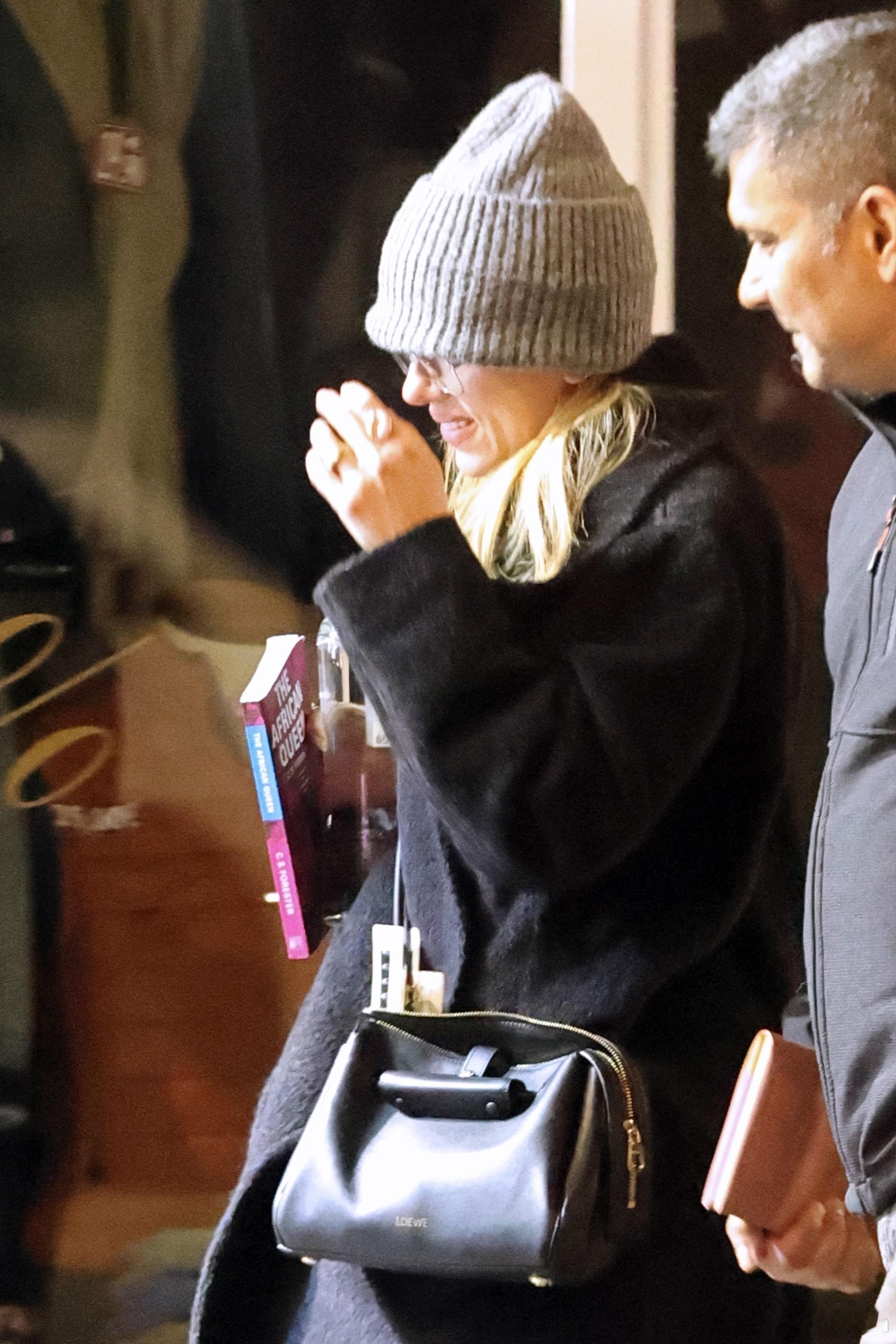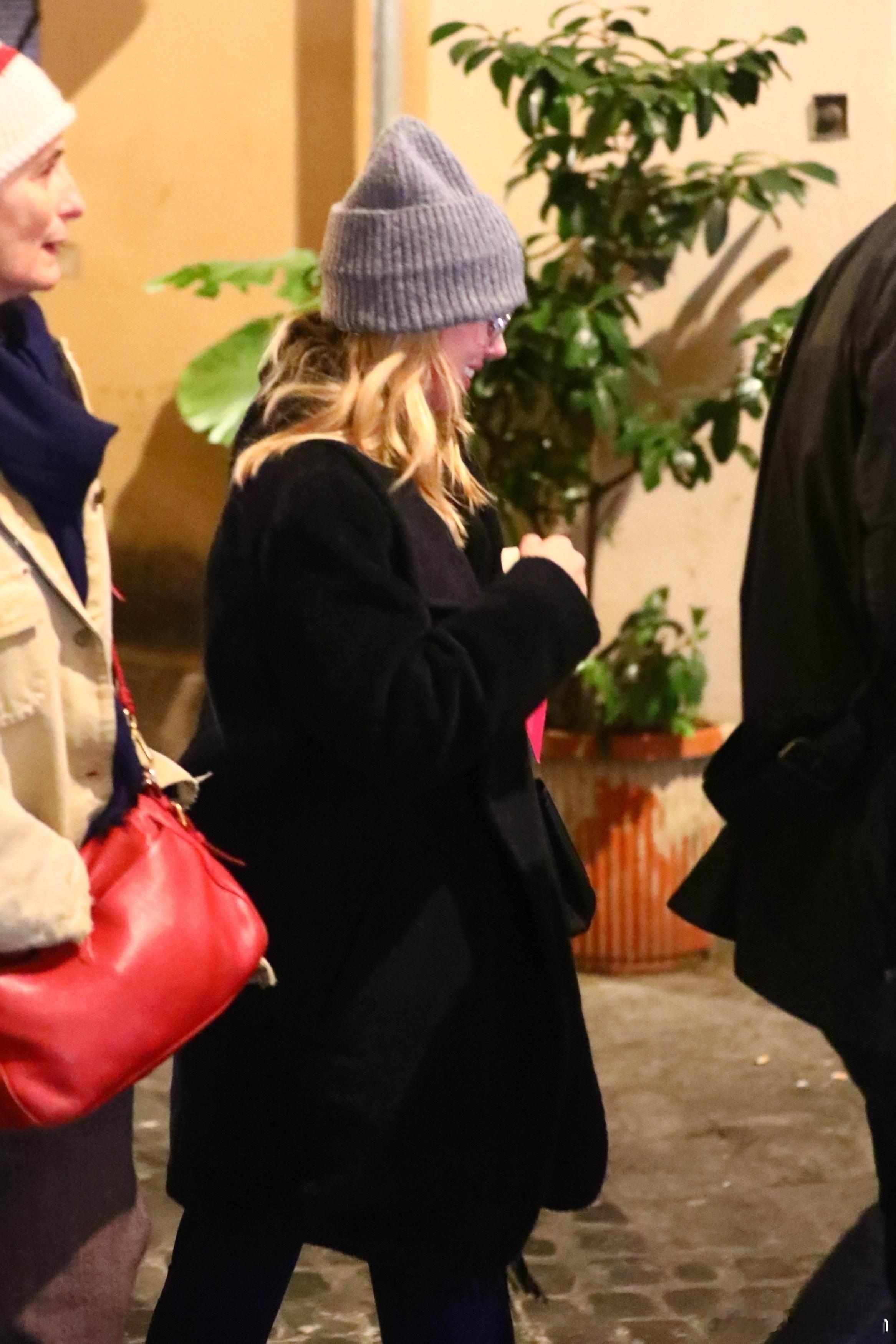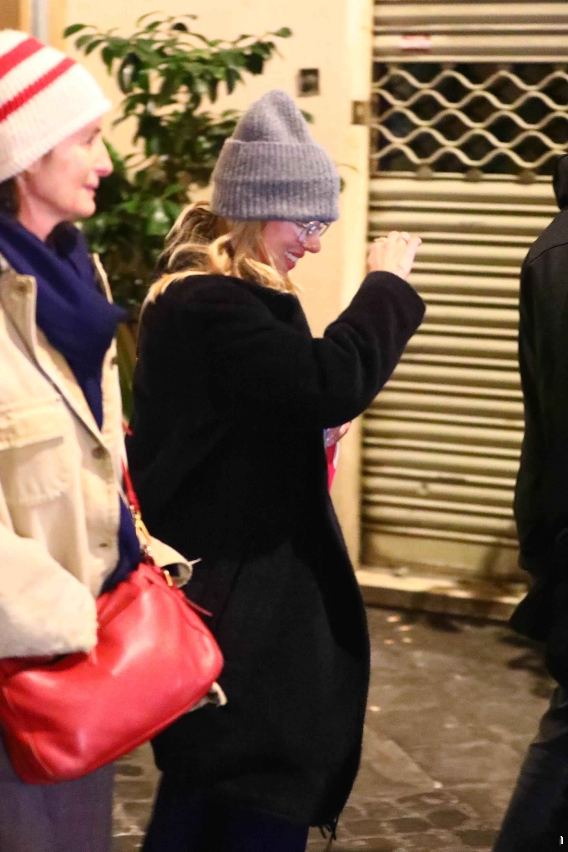 Scarlett Johansson斯嘉丽约翰逊在罗马外出,拿着杯鸡尾酒离开酒店,和导演Wes Anderson还有Prada广告部的制作人一起前往就餐,看来是要拍新广告了