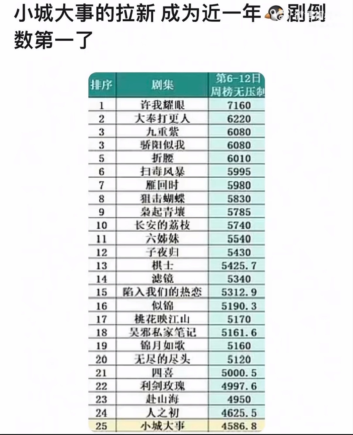 小城大事腾讯拉新倒数第一笑拥勒!小丽扛剧体现在哪了?收视砸穿底盘,云合s+的剧播成s评级,平台拉新倒数第一