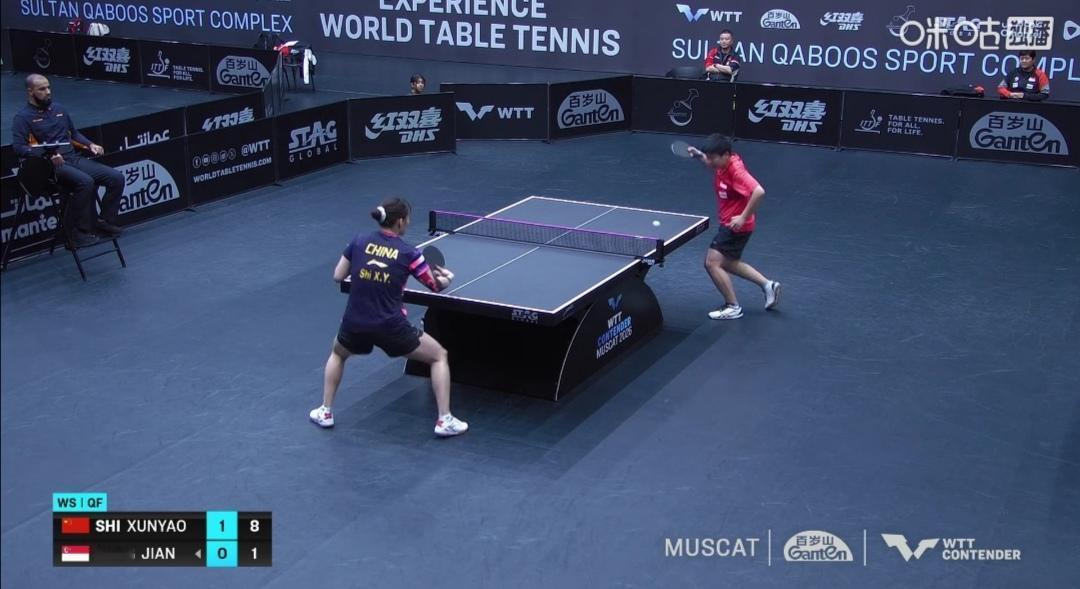 恭喜石洵瑶3:0零封新加坡曾尖,晋级女单四强! WTT马斯喀特常规挑战赛,1/4决赛。 石洵瑶3:0(11-6;11-2;15-13)零封新加坡曾尖。 热烈祝贺石洵瑶晋级女单四强! 还有一场1/4决赛,国乒德比之战。 覃予萱2:3(11-9;11-9;9-11;8-11;5-11)不敌队友纵歌曼!