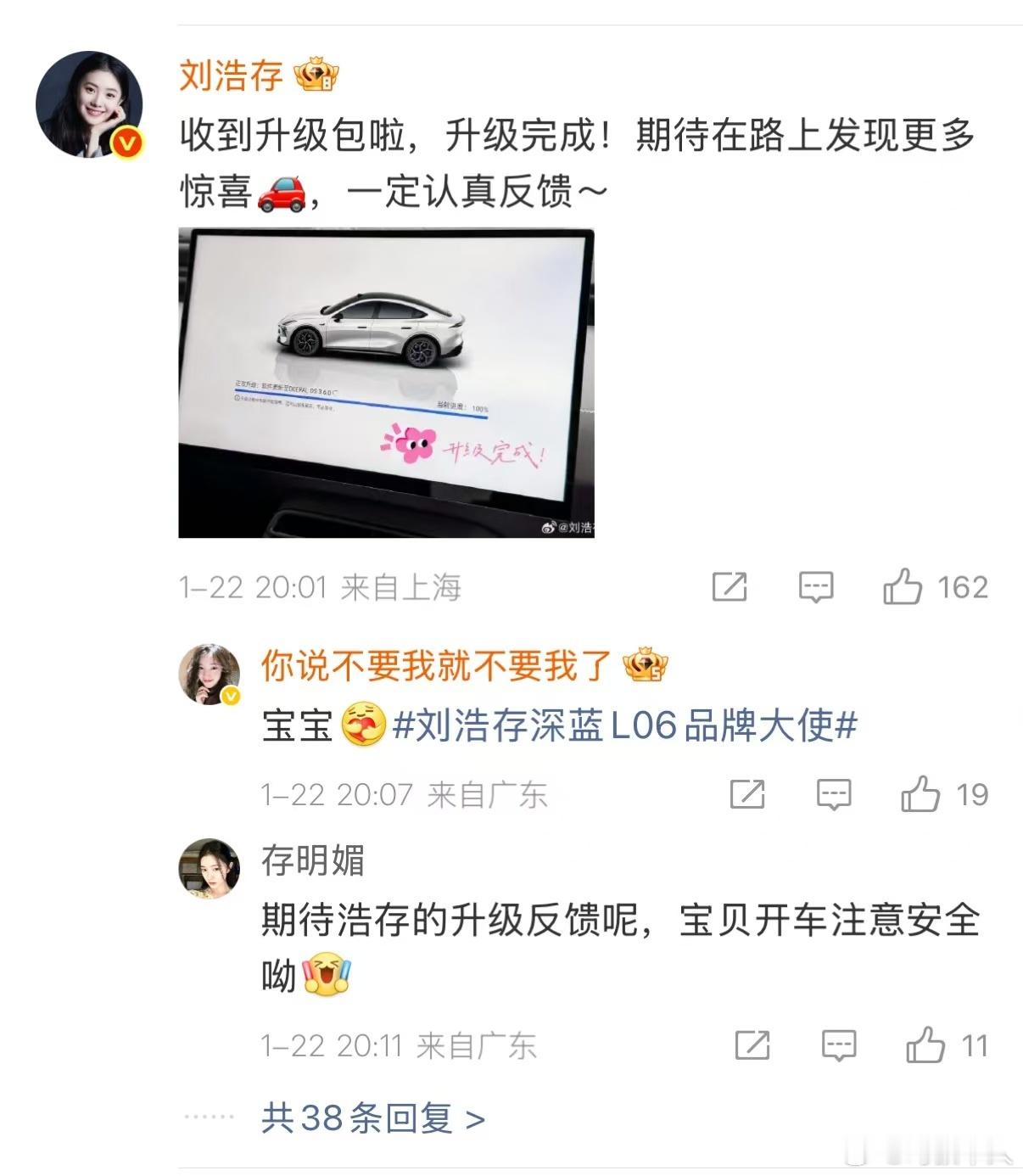 内测官刘浩存申请出战 浩存申请成为深蓝L06OTA新版本的内测官,这颜色和这个妹妹挺搭的~