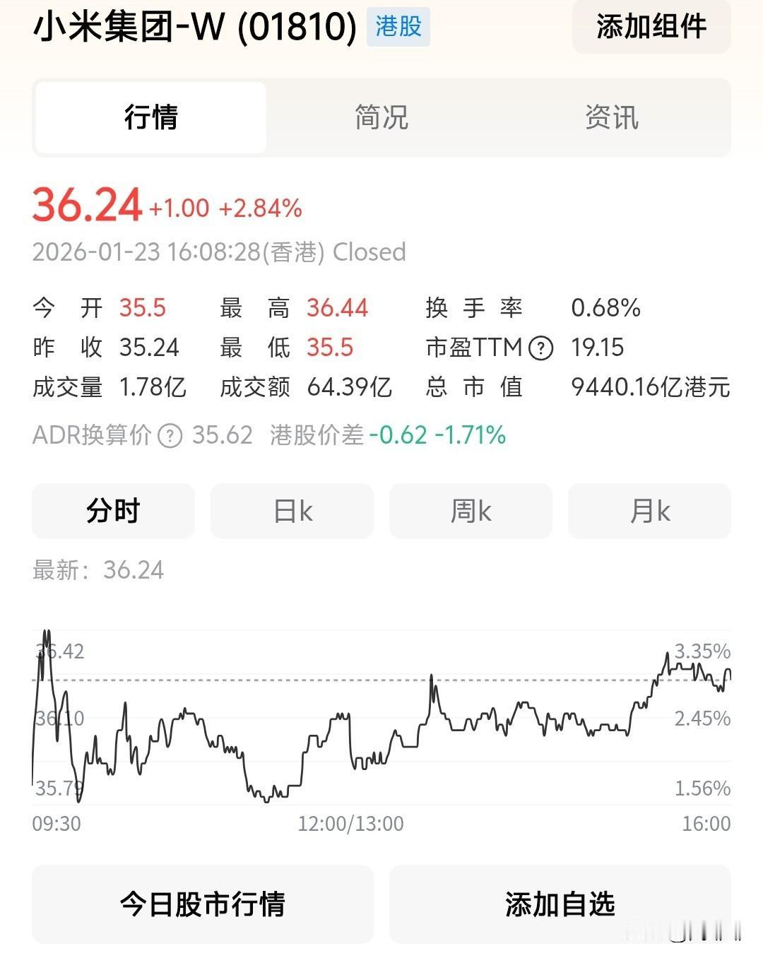 1月23日,小米集团启动最高25亿港元的自动股份回购计划以后,效果已经显现了! 今日小米股价上涨了 2.84%,股价已经到36.24港元每股! 照这个趋势下去,有可能会回40港元每股以上! 但能维持多久就不知道了! 因为小米现在所面临的问题可不小,一旦控制不好,迟早还是被打回原形的!
