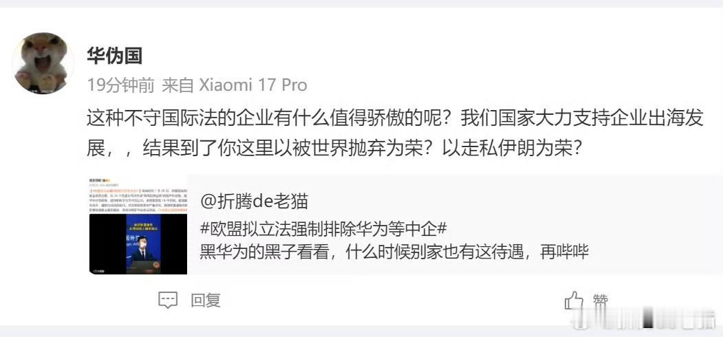 有时候刷到这种评论真不知道说什么好了! 简直就是无视法律法规在造谣抹黑华为! 怼他们吧,他们又说你故意制造矛盾挑起对立! 流量大一点 直接就有人 直接投诉举报! 不怼吧,心里有憋得慌! 看到这些人,真是相当的无语!