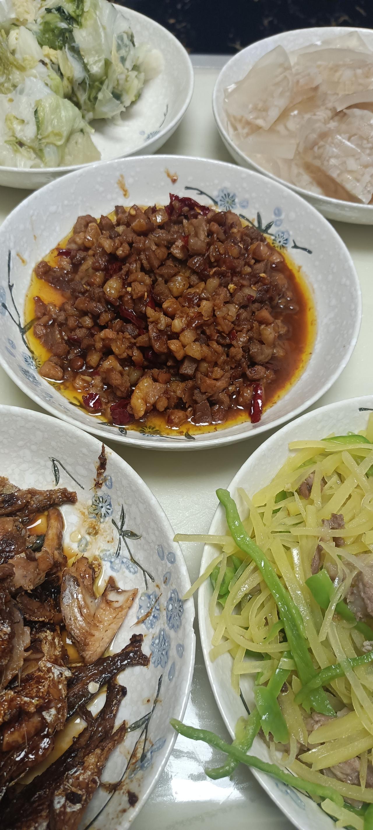 昨晚我老公有个聚会,是去饭店吃的,听说还是我们当地非常有名的大酒店呢! 昨晚回来就说,以后能推的尽量都推掉,最不愿意上饭店吃饭,油炸的东西,吃着就感觉没食欲,还不得不吃。 今天下午三点,他的晚饭菜单就出来了:煎燕刺鱼、尖椒土豆丝、干白菜蘸肉酱,还有一块亲家母做的皮冻,主食是馒头。 现在是晚上五点,饭菜已经上桌,就等着他回来啦! 他真的特别挑食,从来不愿意去饭店吃饭,自己家会做的饭菜他不想吃,他认为还没有我的手艺好呢!太稀奇古怪的东西,他也不爱吃,特挑剔! 有时候从饭店吃完饭回来,到家里还得吃点,哪怕是挂面条呢,也得吃一碗,他说在外边从来就没吃过饱饭。 我俩完全相反,不管去哪吃饭,只要不用我动手,啥都好吃! 我们在一起十二年了,中午他在单位吃。每天的早饭晚饭,都在家吃,我也每天换样做饭。 我想问问大家愿意去饭店吃饭吗?