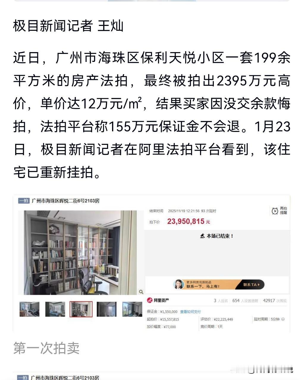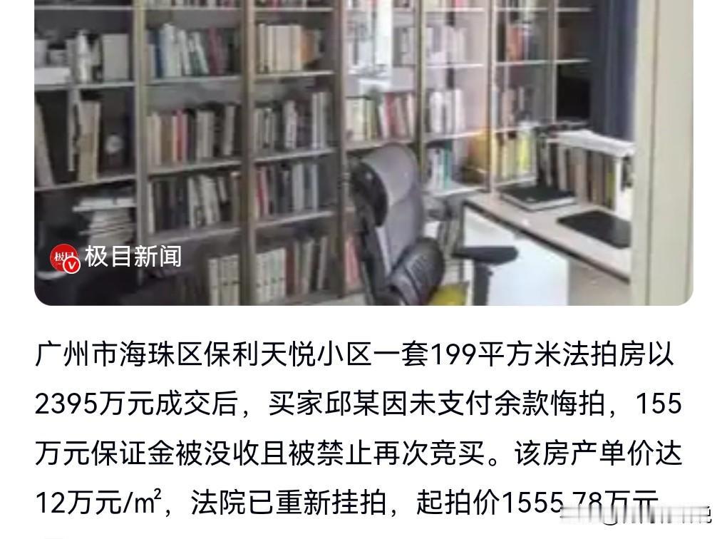 开弓没有回头箭,凡事三思而后行,以免到时候又后悔。 近日,2395万拍下法拍房后悔拍,损失155万。 这155万是保证金,买家不想支付剩余的钱了,所以悔拍了。 但是这保证金是不可能退的了。 白白损失155万。 这也是敲响警钟啊。 这教训有点大呀。