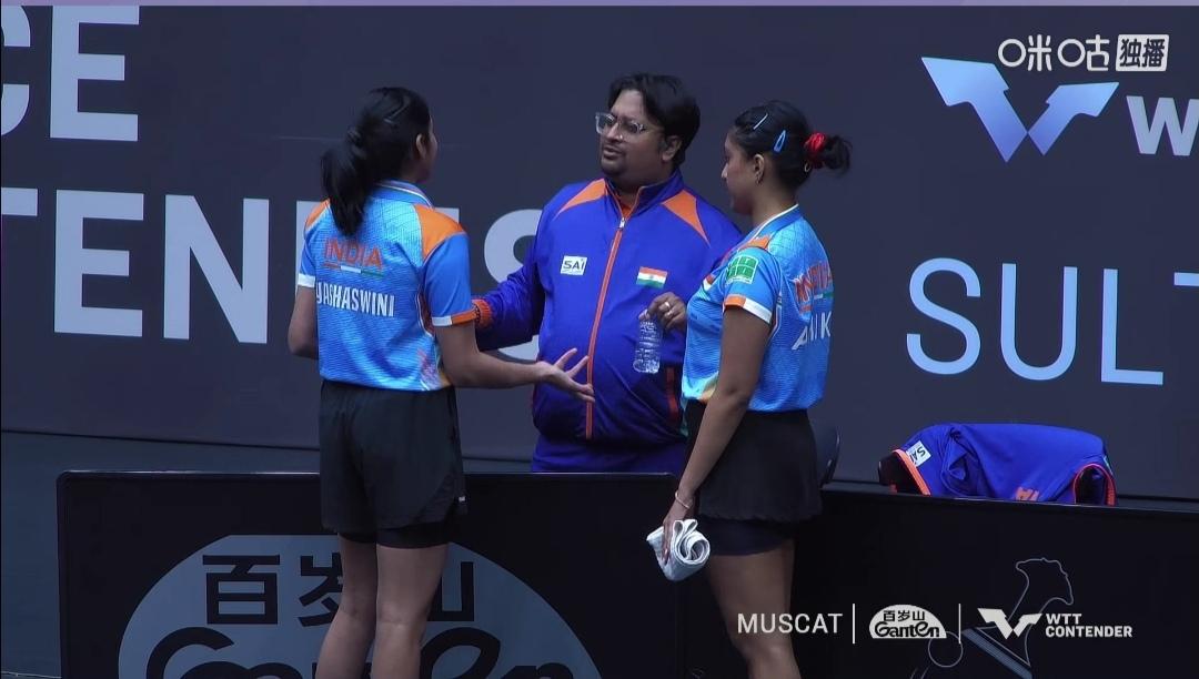 热烈祝贺覃予萱/纵歌曼3:1逆转胜印度组合,晋级女双决赛! WTT马斯喀特常规挑战赛,女双半决赛。 覃予萱/纵歌曼让1追3,3:1(8-11;11-6;11-4;11-9)大胜印度穆克吉/戈尔帕德。 另一场女双半决赛 石洵瑶/王晓彤0:3(8-11;8-11;14-16)完败于中国香港杜凯琹/吴咏琳。 热烈祝贺覃予萱/纵歌曼晋级女双决赛! 女双决赛 覃予萱/纵歌曼Vs中国香港杜凯琹/吴咏琳