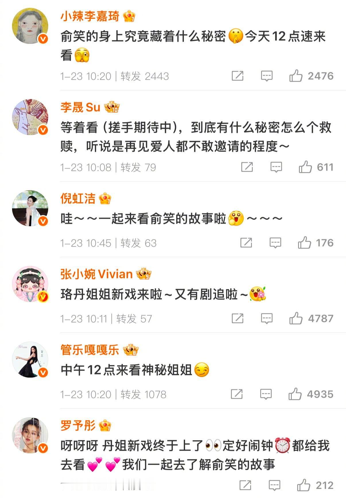浪姐6在王珞丹评论区团建 浪姐6姐姐们集体冲去丹丹评论区团建!为《暗恋者的救赎》打call的同时,这份神仙友情我真的慕了✨