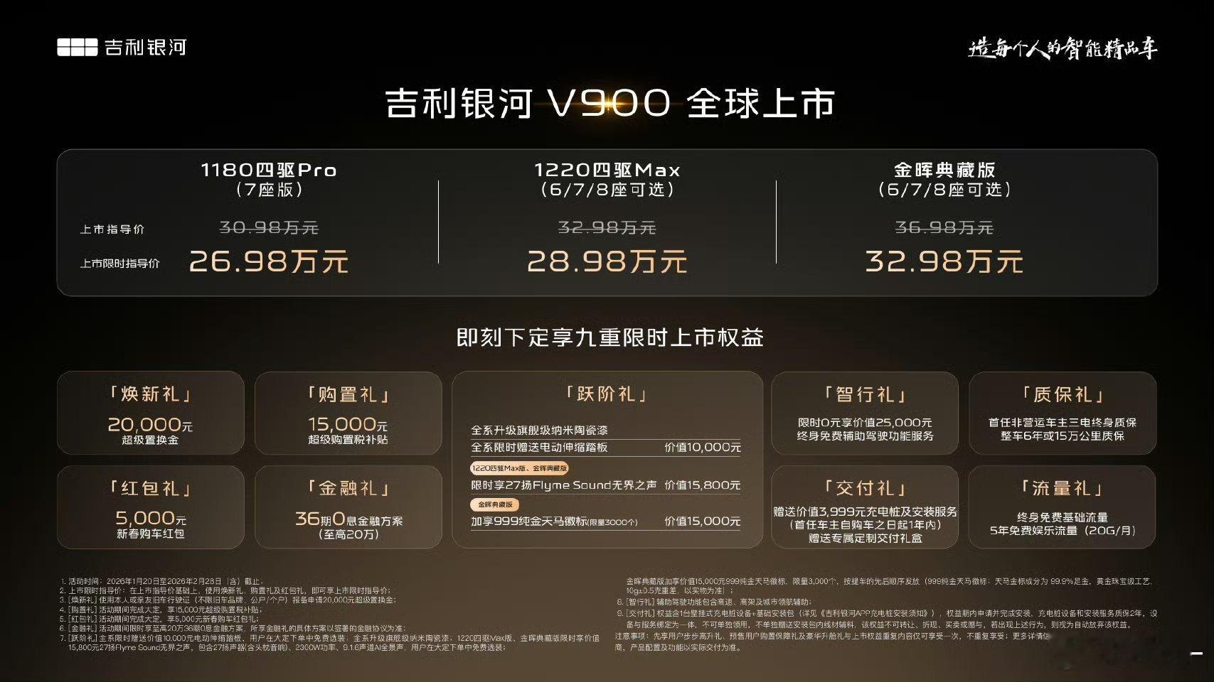 吉利银河V900全球上市26.98万起大大大大大大大……一台这么大的四驱增程MPV,卖2开头的价格,还得是吉利银河啊6.7.8座版本可选,纯纯陆地公务舱,除此之外还全系标配了千里浩瀚辅助驾驶H5解决方案,支持高速 + 城区全场景无图 NOA 全覆盖,开大车最怕的停车问题,也能轻松化解,感兴趣的兄弟们可以去了解一波