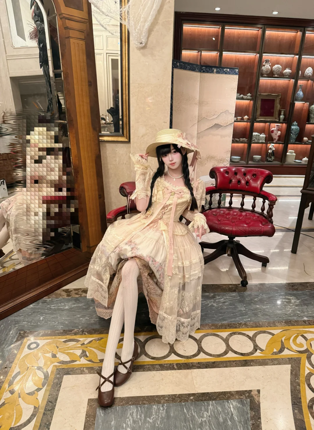 优雅白裙少女,静坐咖啡馆,时光静好
