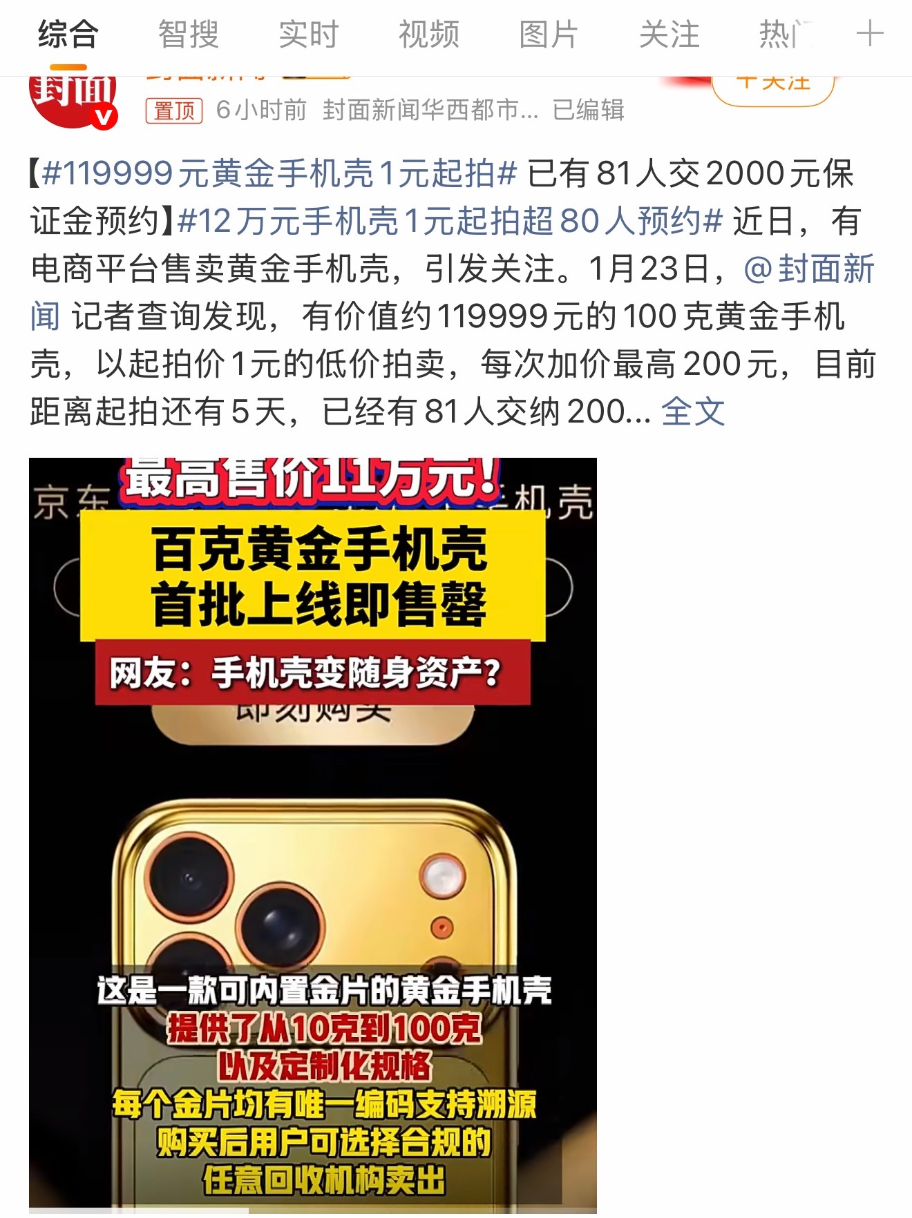 119999元黄金手机壳1元起拍套手机上,我该保护手机还是这个壳啊,并且这样的话