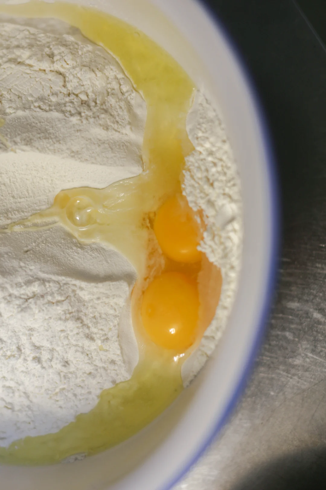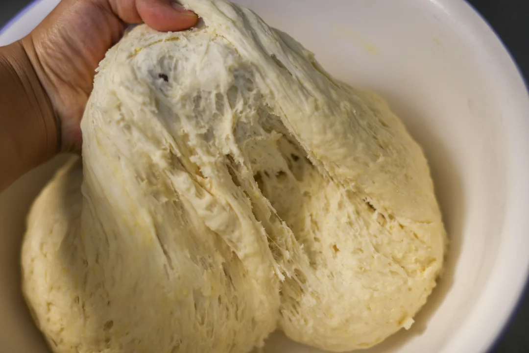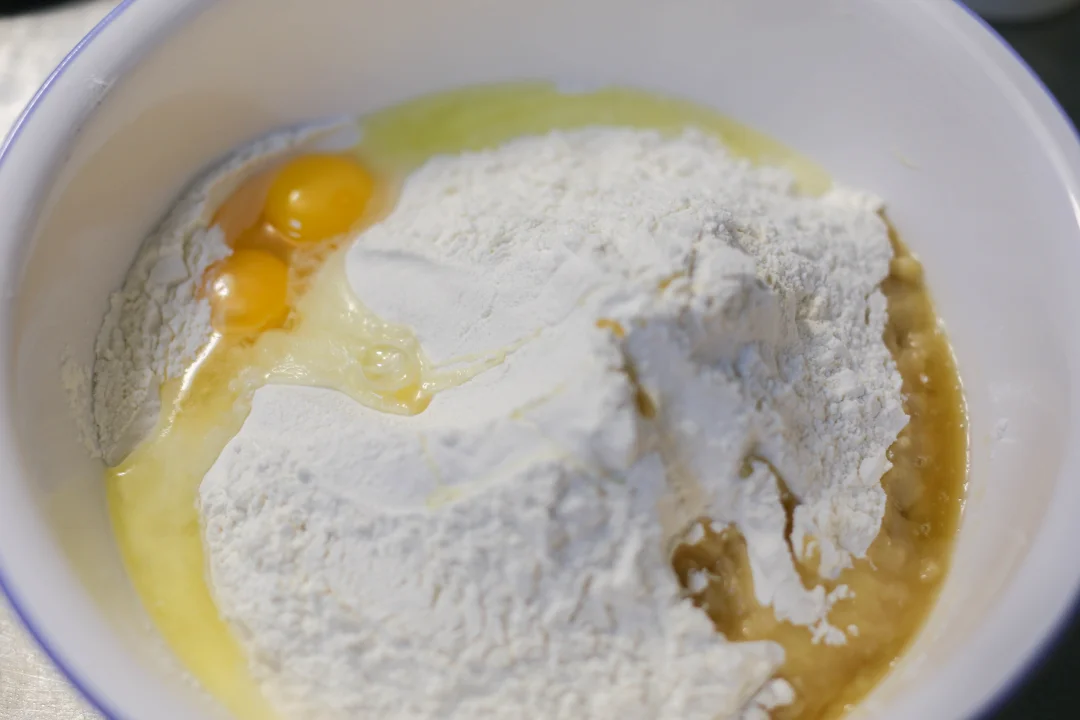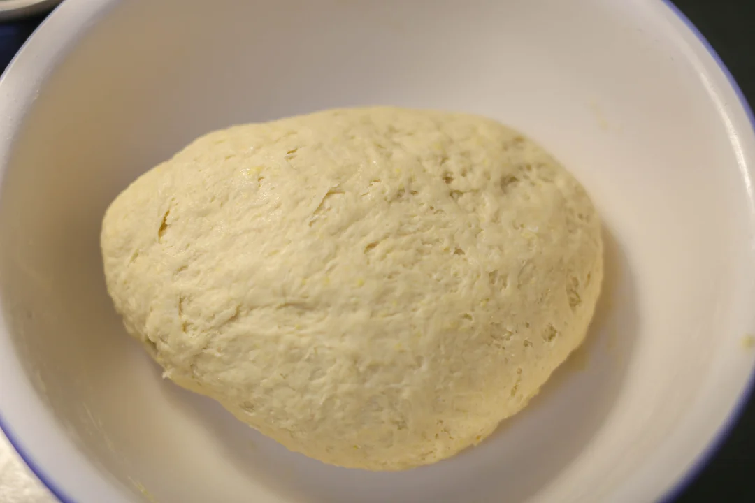 2:鸡蛋放入面粉中,酵母水倒入面粉中,混合成面团,室温25度左右饧发30分钟。