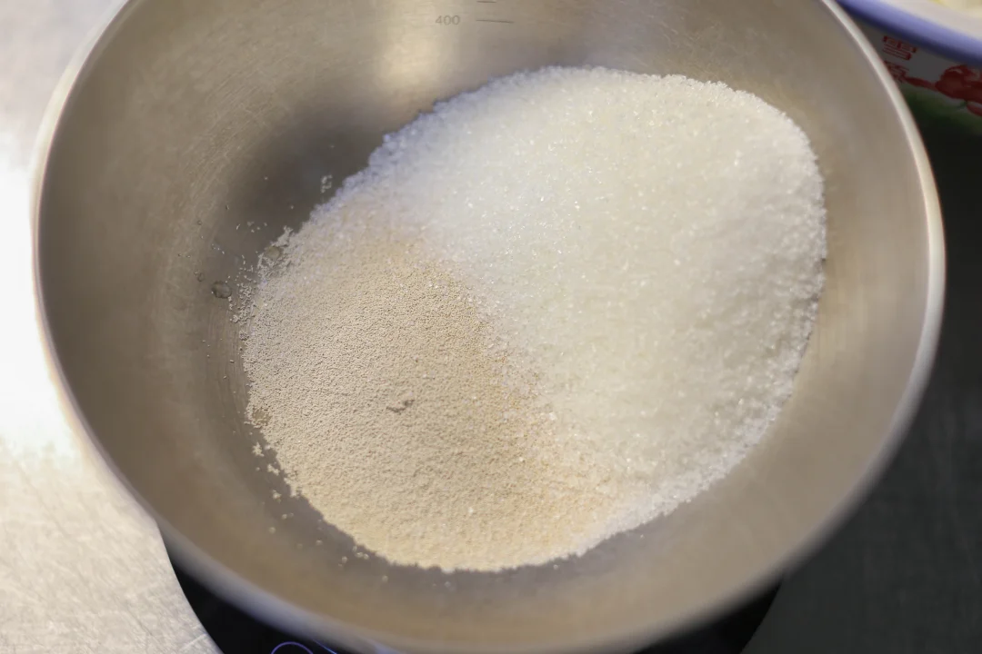 1:把酵母20克、牛奶500克、白糖100克放入牛奶中,混合成酵母水。