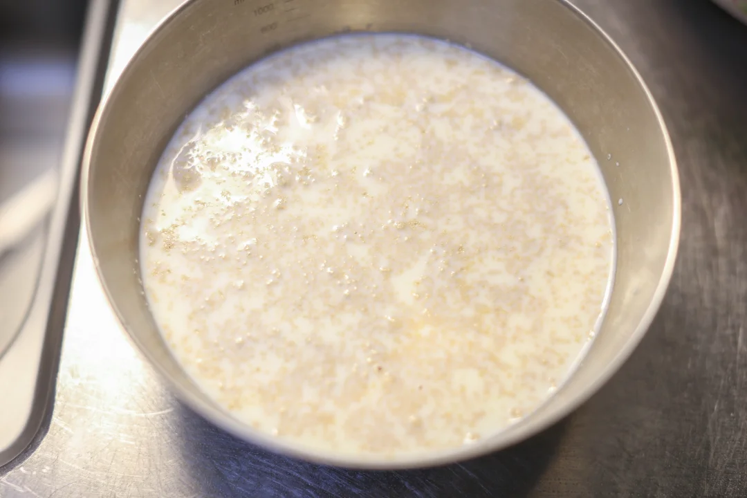3:饧发大约30分钟,有明显的蜂窝状就可以,因为是牛奶和面,不会发的那么大。