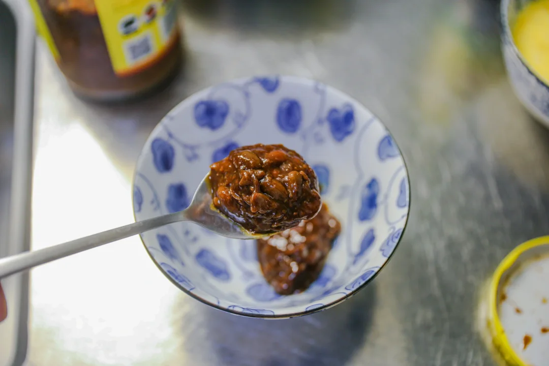前段时间和好友聚会,她们老家都是来自东北那嘎达,吃饭席间解锁了一道夏日神饭菜—拉丝鸡蛋酱,不管是用生菜卷着吃,夹馒头、拌面条都巨好吃。 回家立马复刻,拌着米粉吃了一大碗,香、美味。 做法很简单。 配料如下: 2勺黄豆酱 1勺蚝油 2勺料酒 1勺香油 1勺生抽 半勺老抽,加入花椒末,葱花和辣椒圈。 秘密武器:花椒末一定要加入。