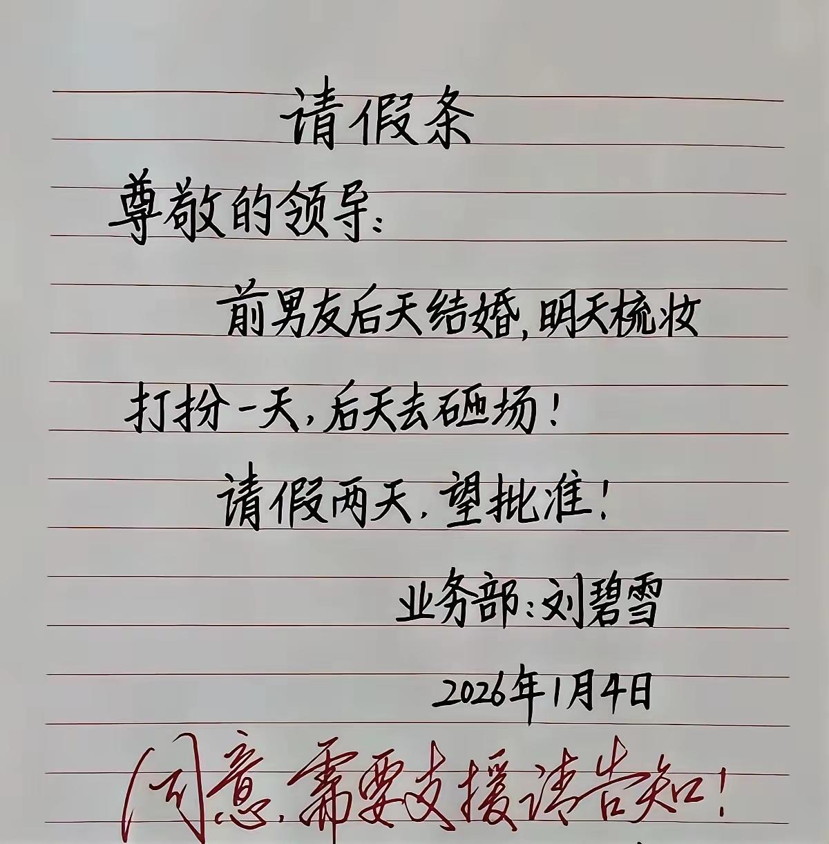 这假条谁敢批 这姑娘是准备第二天去玩命啊?[黑线]