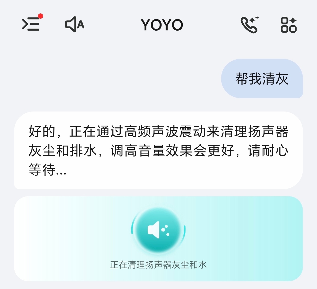 偶然发现荣耀YOYO智能体的一个小功能可以通过高频声波震动,清理扬声器的灰尘和排水。