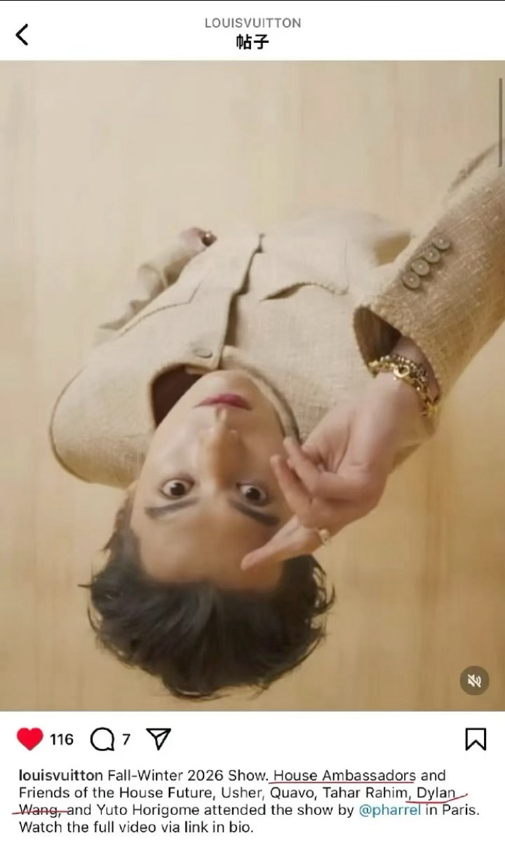王鹤棣巴黎时装周已经被lv官方ins、 story 、推特认领,而且王鹤棣已经已集满五大金九、TVC、地广,待遇这块没的说。