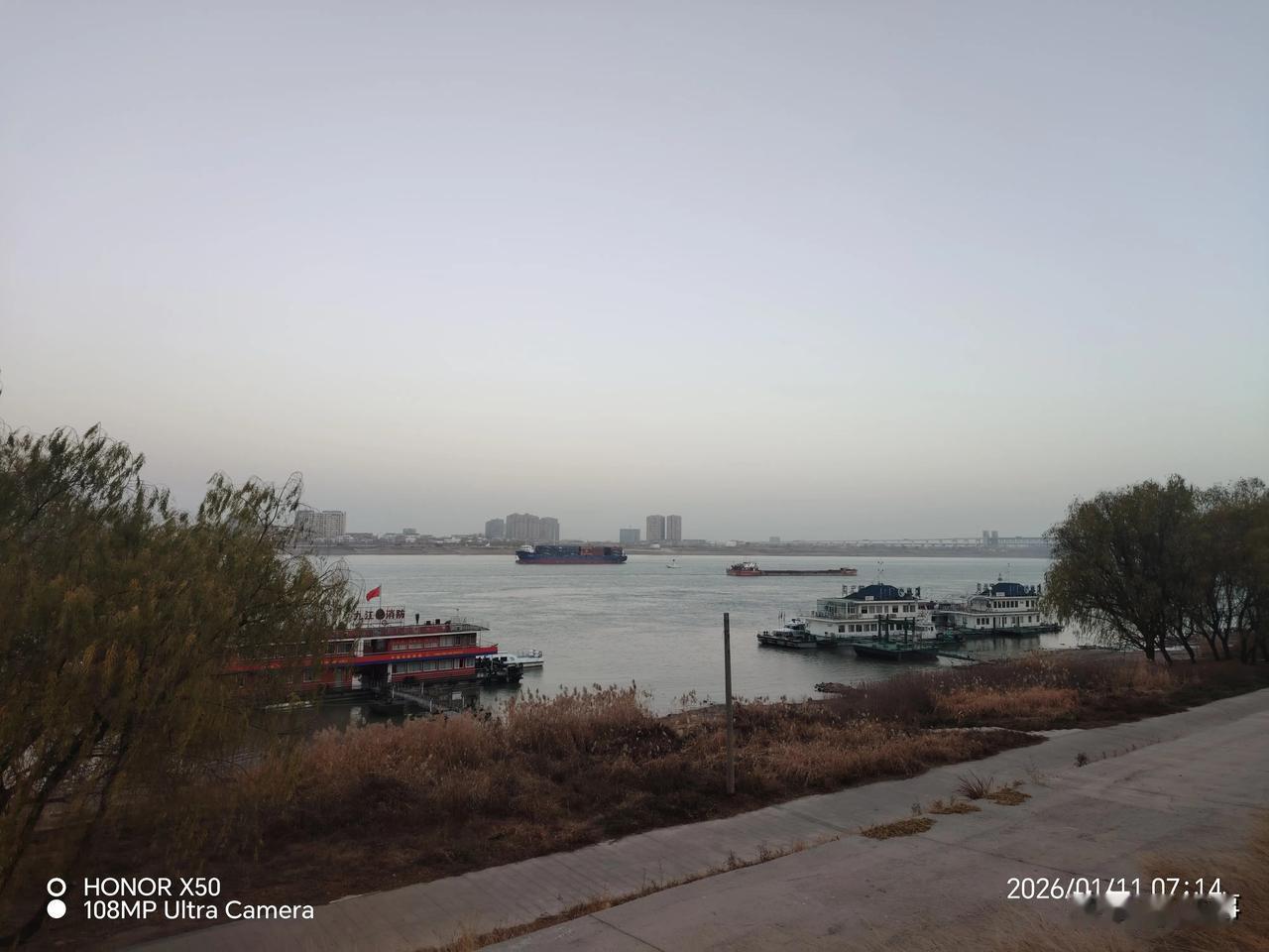 我的今日状态:😁轻松愉快 我这里的天气:🌤️多云2026年1月11日长江岸边