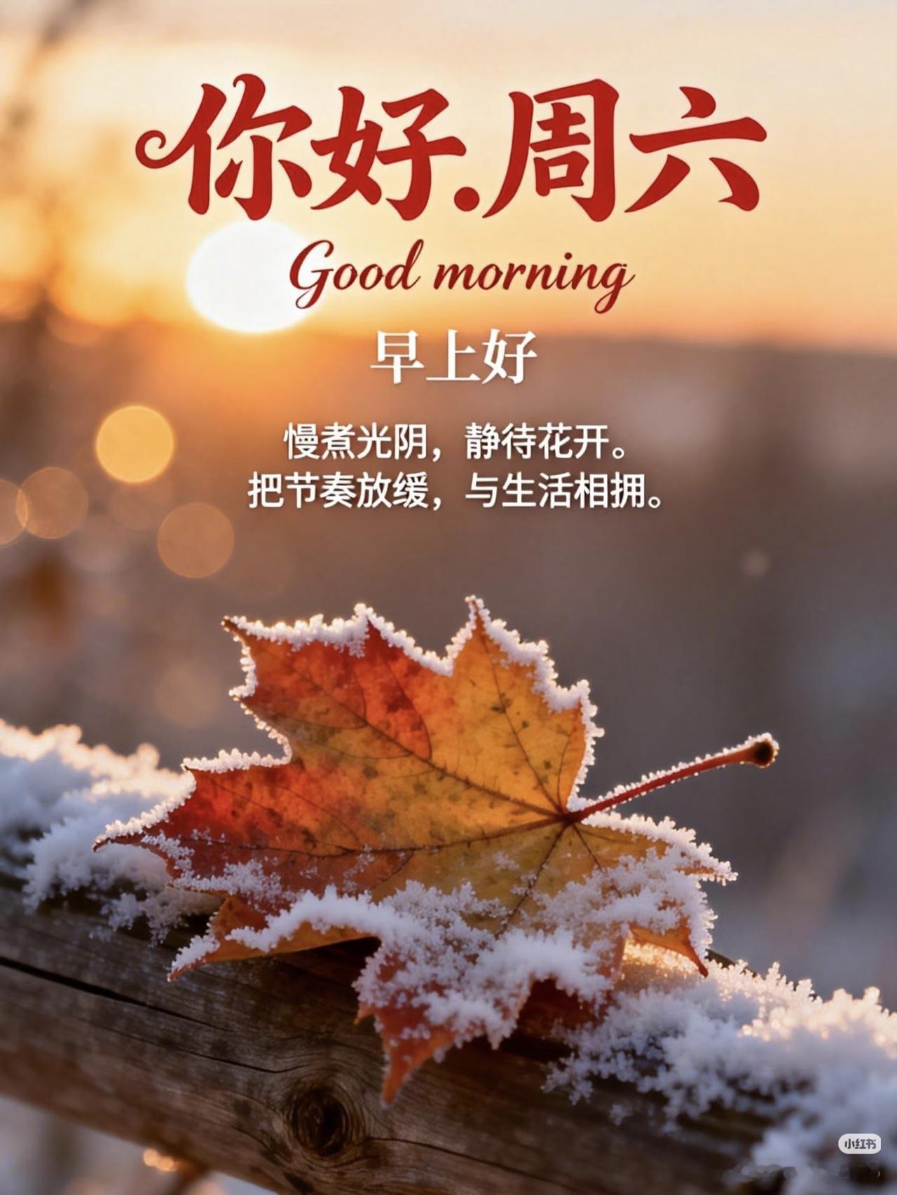 周六吉祥 又是一个周末,把生活静下来,把生活慢下来,静静地享受这周末的生活。生活是细水长流的爱。不慌不忙地过,不骄不躁地干,好好吃饭,认真生活,今天也要稳稳地幸福。早安!