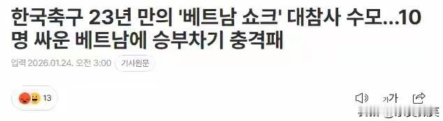 中国U23创造了历史的同时,韩国队也创造了历史,不过他们与中国队相反,是最差的历史。 在季军争夺战中,韩国队不敌少一人作战的越南队,最终败北。 韩国媒体也发文强烈抨击,“时隔23年再次输给越南队”“遭遇越南强烈冲击”“耻辱惨败”