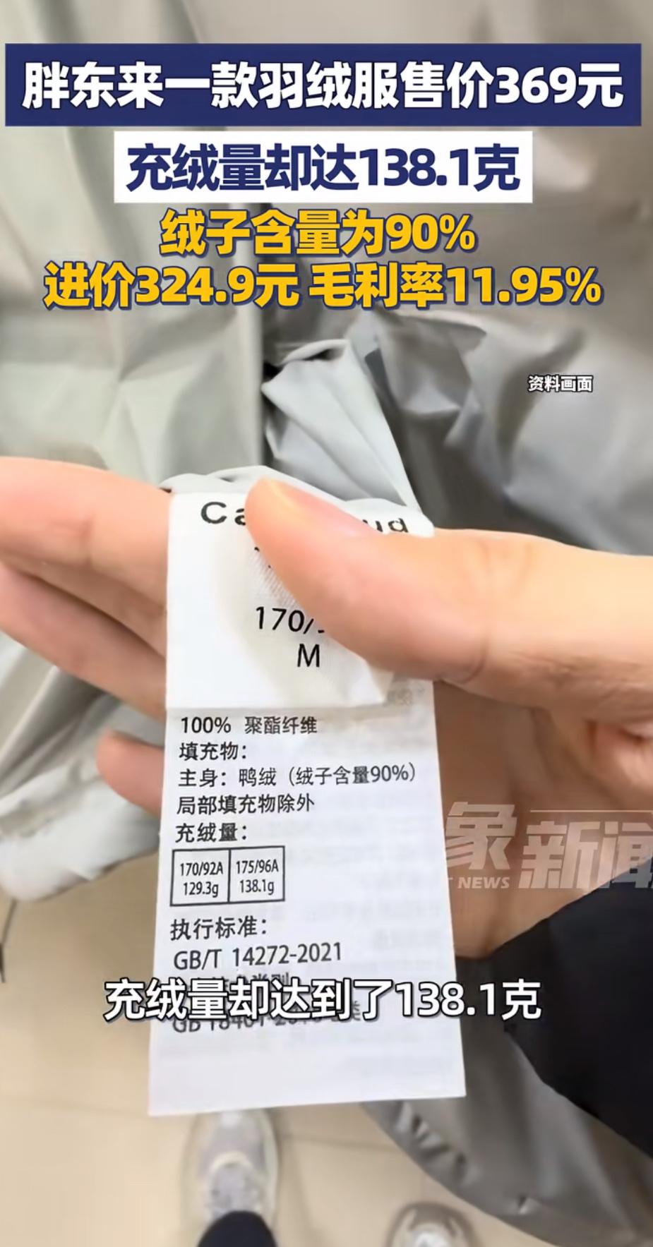 胖东来羽绒服内里绒量惊人,仅90%绒子含量,毛利率高达11.95%!这样的品质和