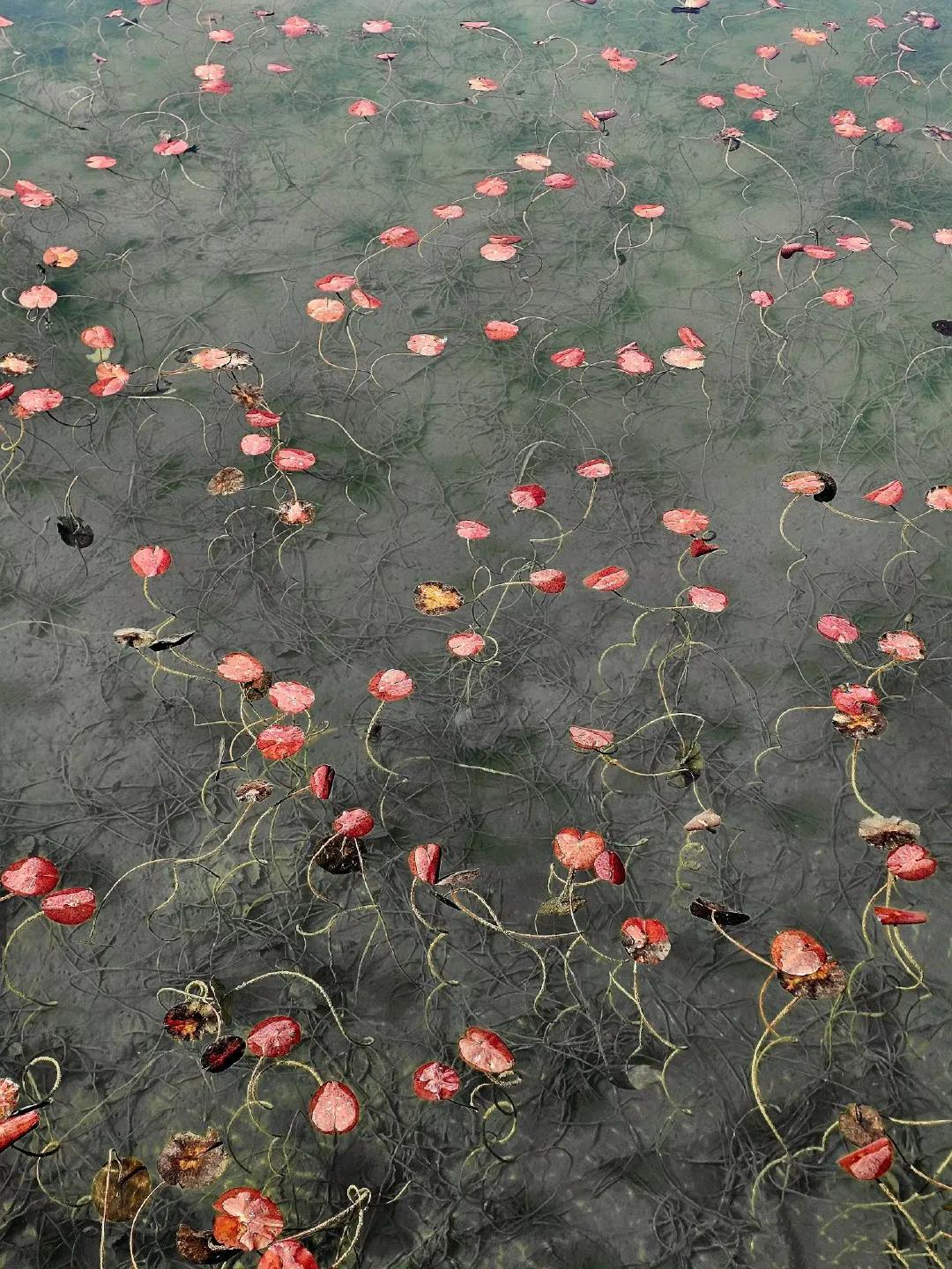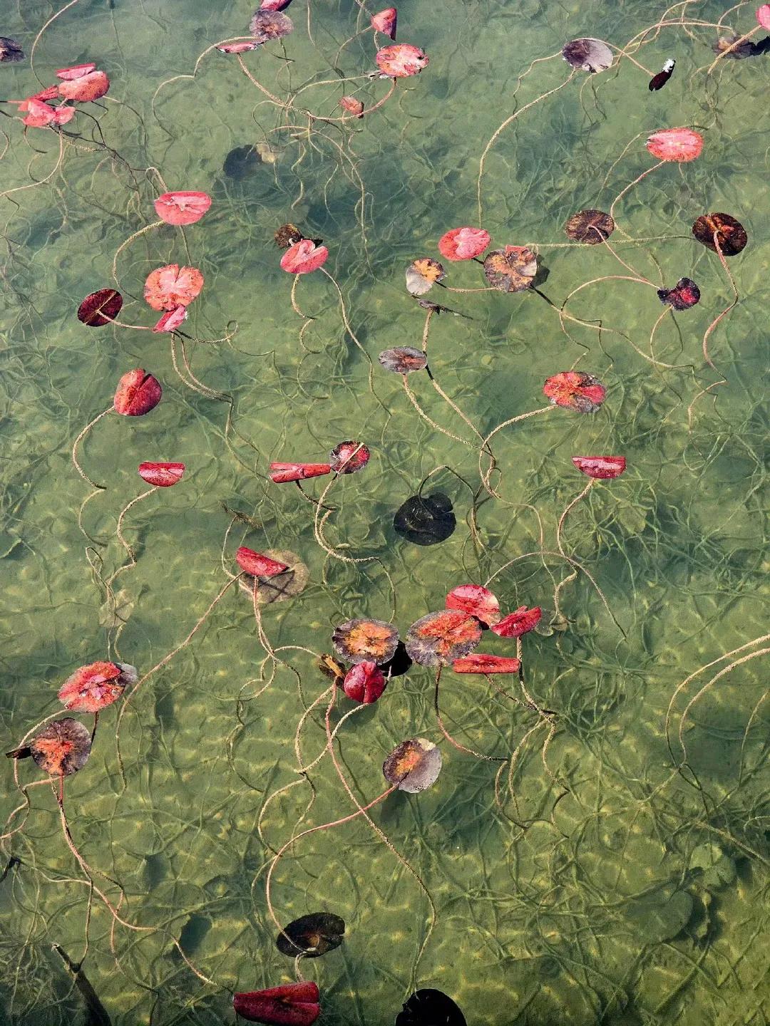 冬天的睡莲叶,像水中的花。