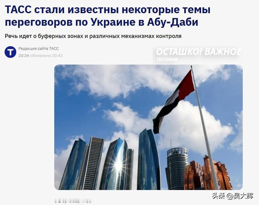 谈判中讨论缓冲区及领土控制问题 据塔斯社消息人士透露,缓冲区和各种控制机制是俄罗斯、美国和乌克兰三方工作组在阿布扎比举行的安全会议议题之一。 讨论涉及美国提议的经济缓冲区。根据其中一个方案,可能会在顿巴斯的部分地区建立自由经济区。 泽连斯基表示,俄美乌三方正在阿布扎比讨论结束冲突的条件。 此前有报道称,莫斯科据称正在考虑按前线战线冻结冲突。 谈判以完全闭门的形式进行,没有媒体参与。