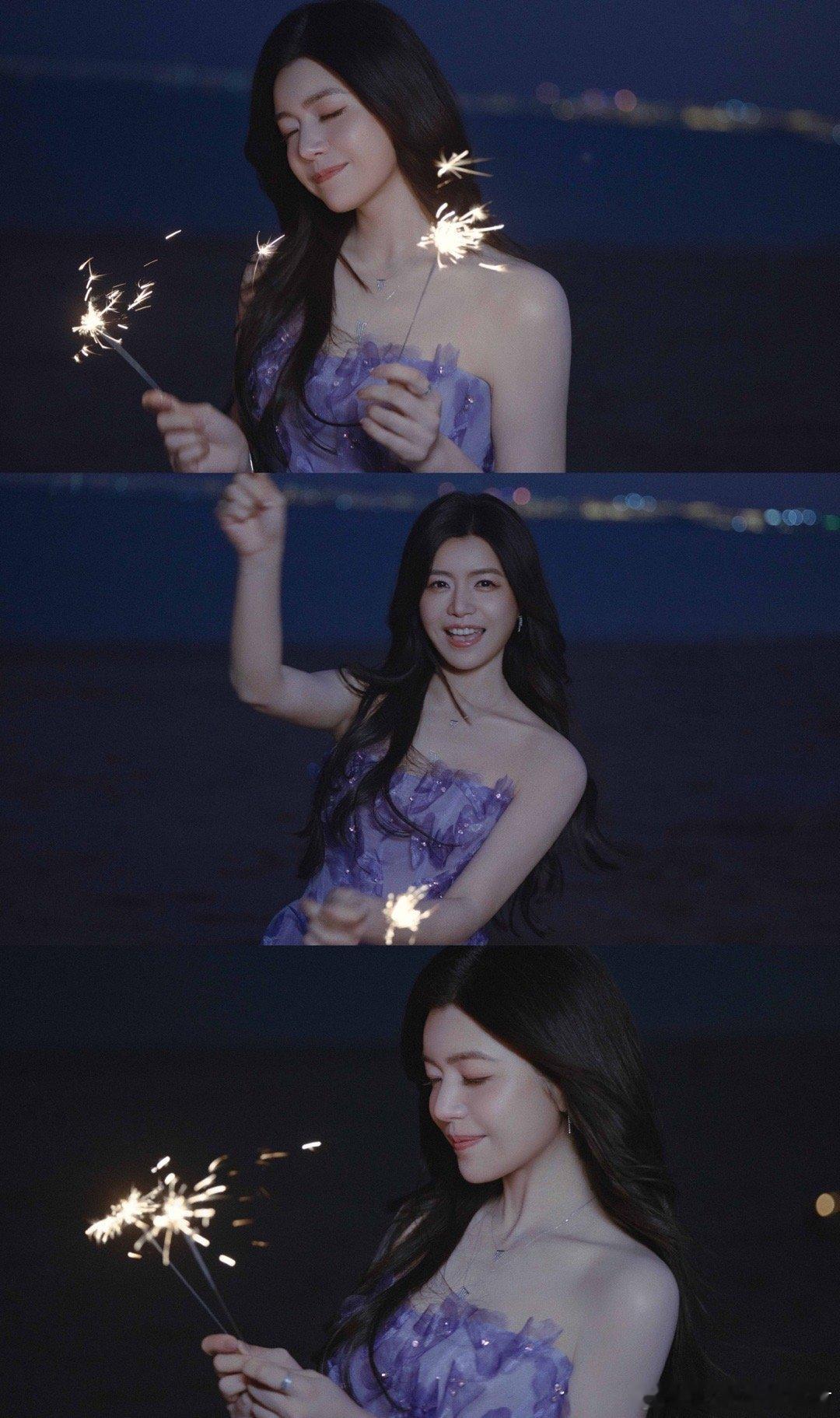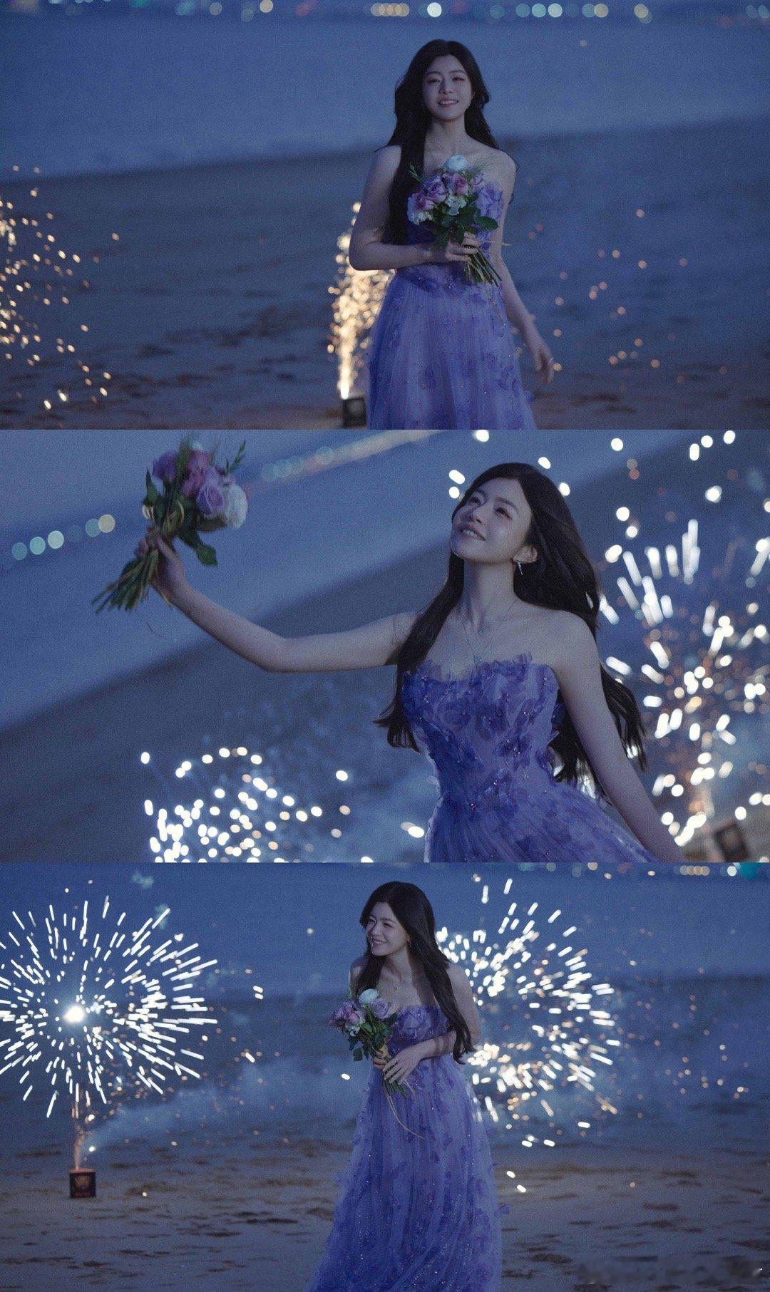 陈妍希海边烟花大片 原来浪漫可以被这样具象化!陈妍希站在烟火下,淡紫裙身映着夜空的光,每一朵立体花饰都在诉说温柔。她不是烟花下的观众,而是这场浪漫大戏的女主角。