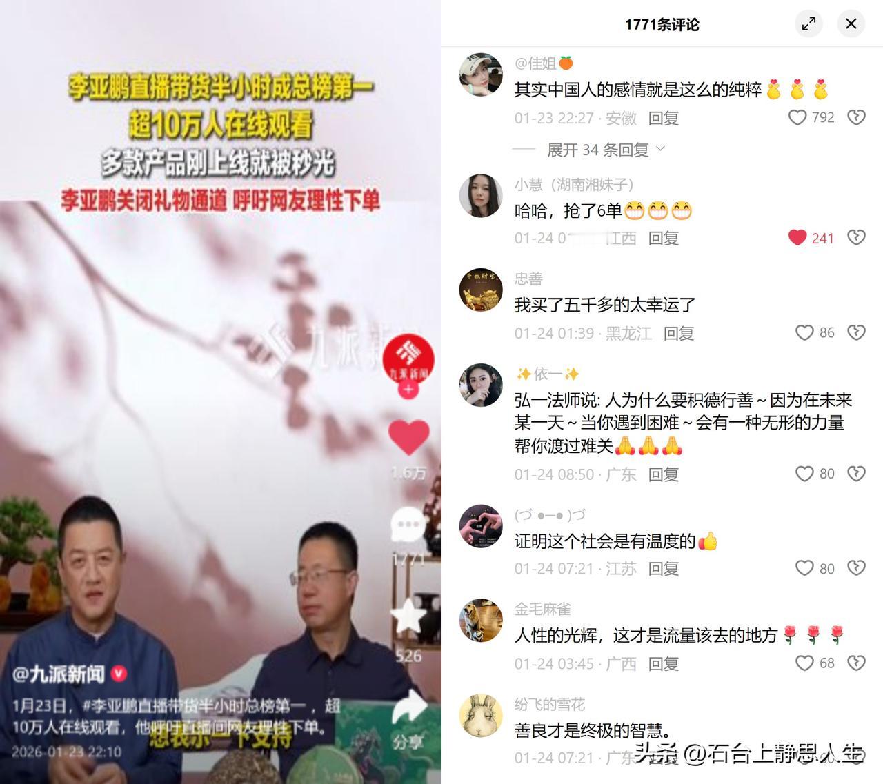 李亚鹏直播半小时冲总榜第一,反手把礼物通道关了。 他不是第一次上热搜了,前几年因为丽江的项目欠了4000万,被执行、限高,大家说他情怀害死人。可这次不一样,他坐在镜头前反复说理性下单,点点赞就行,大家倒更疯了:有人抢了6单,有人买五袋米,还有人花五千多,说就是想帮他还债。 以前总觉得情怀是商人的话术,可李亚鹏这事儿刚好反过来,他当年为艺术家小镇的情怀踩了坑,没躲没跑,承认自己的错自己扛,现在大家用消费告诉他:你守的诚信,我们认。很多人说中国人的感情纯粹,可不是嘛?见多了欠钱耍无赖的,突然碰到个愿意买单的,就想凑把手,你给诚信留面子,我就给你留活路。 这年头流量总盯着博眼球的热闹,可这次大家偏要把流量给实在。大家看重的未必是产品多好,主要是想给敢认账的人递根绳子:你敢直面债务,我就敢用钱包投票,这不是傻,是普通人对善良不该被辜负的执念。 大家心里想的很简单,就是希望愿意好好收尾的人,别跌得太疼而已。毕竟,我们都怕自己哪天遇着事儿,也能有这么一群人,说句我支持你。