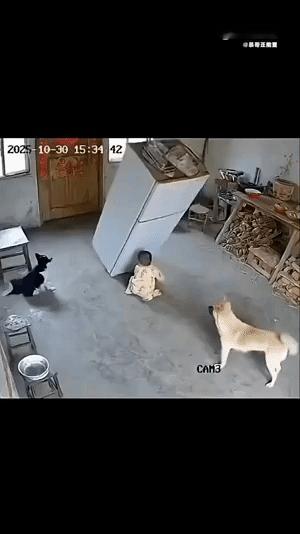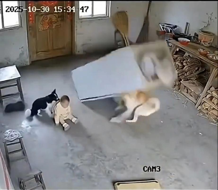 就在小孩被柜子压的前一秒,狗子猛的跑上去用尽全力上前挡住,另一只狗用嘴将孩子拖了出来,结果黄狗被压在柜子下面,看的真让人揪心💔,真是一只善良的狗狗,不得不说动物真的通人性,所以我们人类也应该善待它们🙏 愿每个生命都能被温柔以待,愿我们永远记得,这些毛茸茸的伙伴,早已是家庭里不可或缺的一员。 善待它们,就是善待这份跨越物种的深情与守护🙏